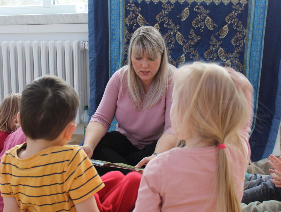 Am Freitag, den 15.November 2024 fand der bundesweite Vorlesetag statt. Unter dem diesjährigen Motto "Vorlesen schafft Zukunft" besuchte uns Frau Pfütze. Gemütlich hatte sie den Mehrzweckraum vorbereitet, so dass die Kinder aus den Gruppen der "Waldkinder" und "Kleinen Waldfreunde" gespannt den tollen Geschichten lauschen konnten. Ein herzliches Dankeschön an Frau Pfütze für Ihre Zeit und die tolle Art und Weise für die Kinder zu lesen!