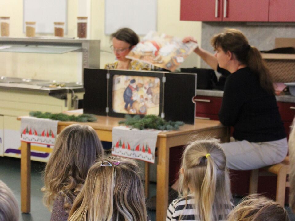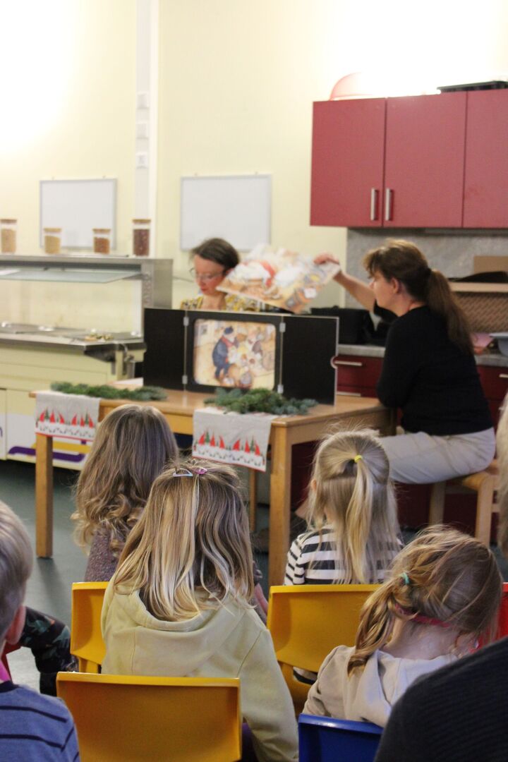 Mit der Geschichte "Ach du dicker Weihnachtsmann", lauschten und betrachteten die Kinder den Erzählungen, Liedern und Bildern gespannt, aufmerksam und mit einem Lächeln im Gesicht.