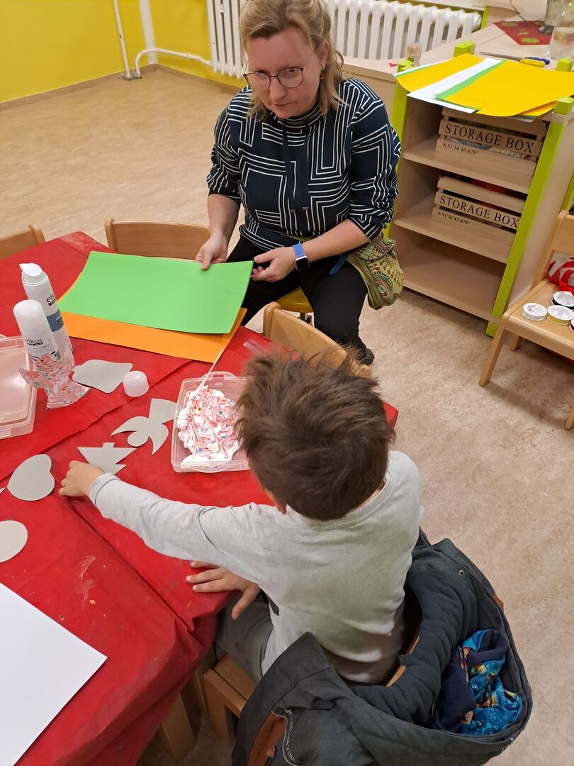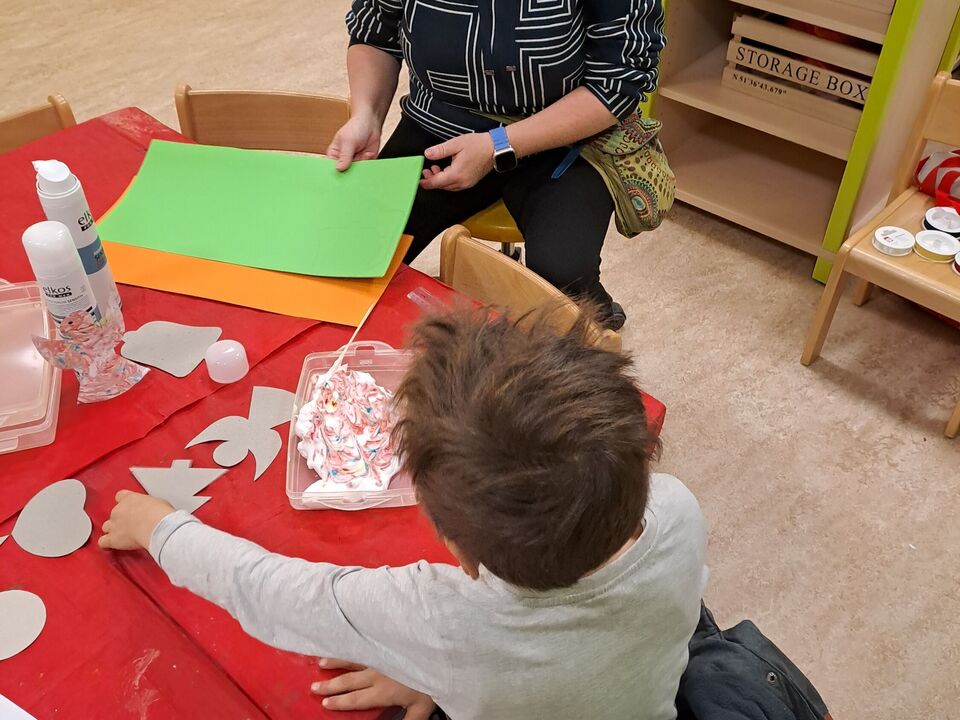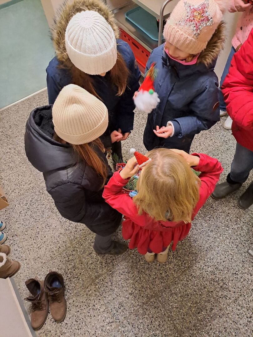 Weihnachtsspirale, Weihnachtsanhänger mit Rasierschaum, Haarreifen, Kekshäuser, Sternenwerkstatt, Weihnachtslieder mit Boomwhackers… überall gab es was zu tun! Bei der Tombola, in Bauchläden oder beim Flohmarkt, gab es allerlei Nützliches und Selbstgemachtes.