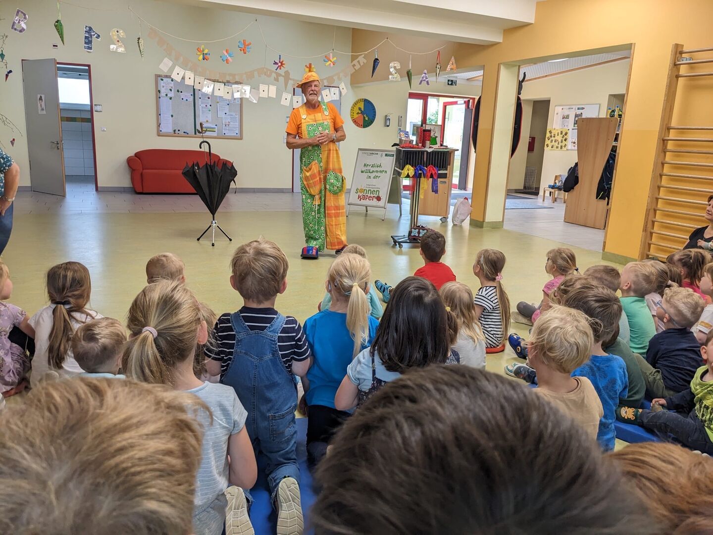 Zauberer Gerd hatten wir anlässlich des Kindertages zu uns in die Kindertagesstätte eingeladen. Mit seinem 1- stündigen Zauberprogramm konnte er alle Kinder überzeugen.
