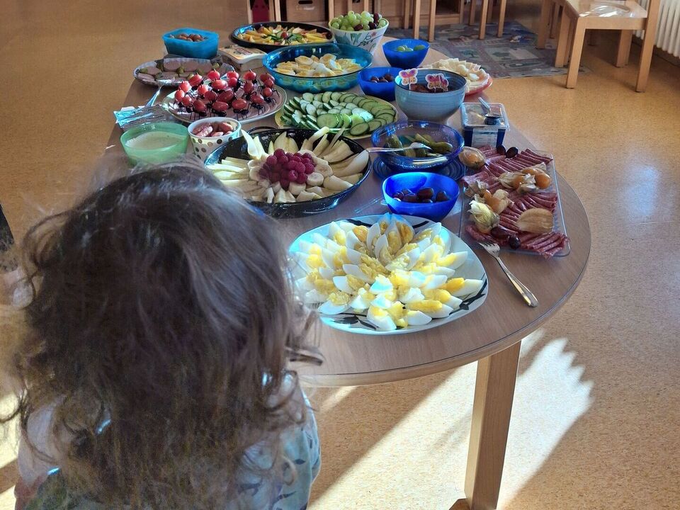 Vor Ostern gab es ein großes Buffet für alle Kinder unseres Kindergartens. Aus einer großen Auswahl konnten die Kinder nach Lust und Laune Frühstücken, neue Dinge kosten und hatten so einen schönen Start in die Osterzeit.
