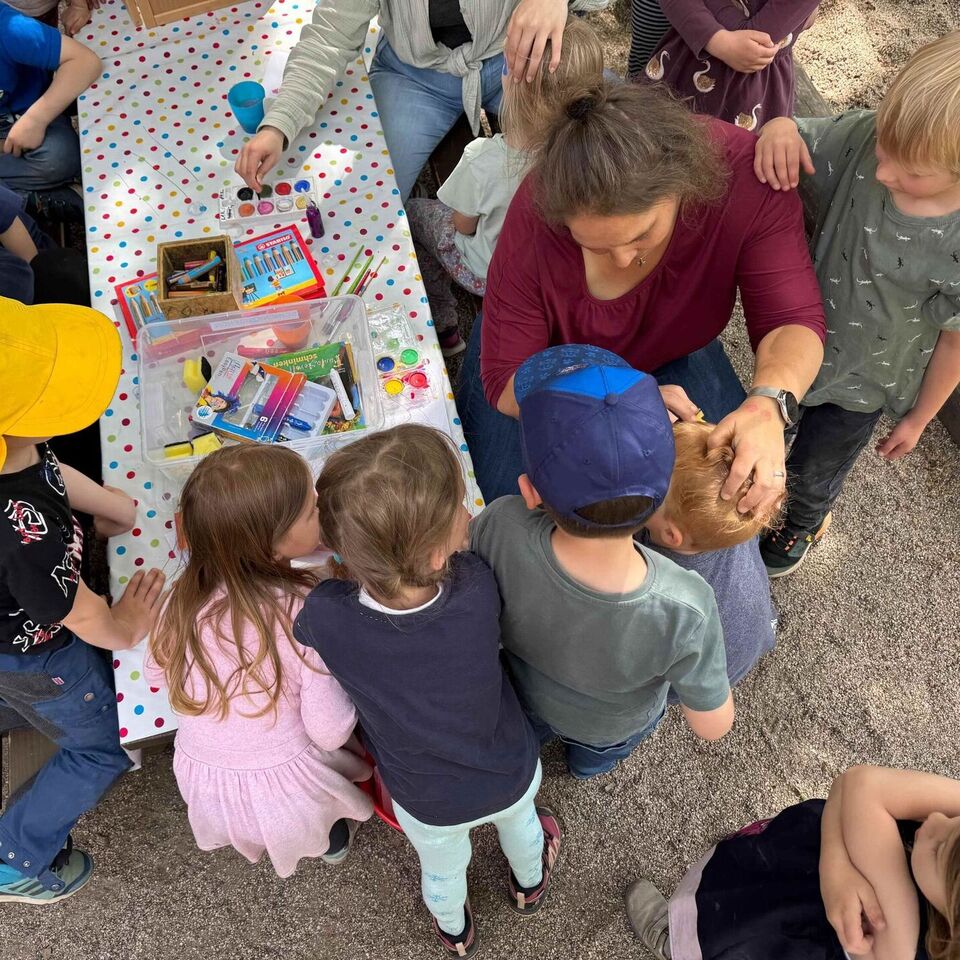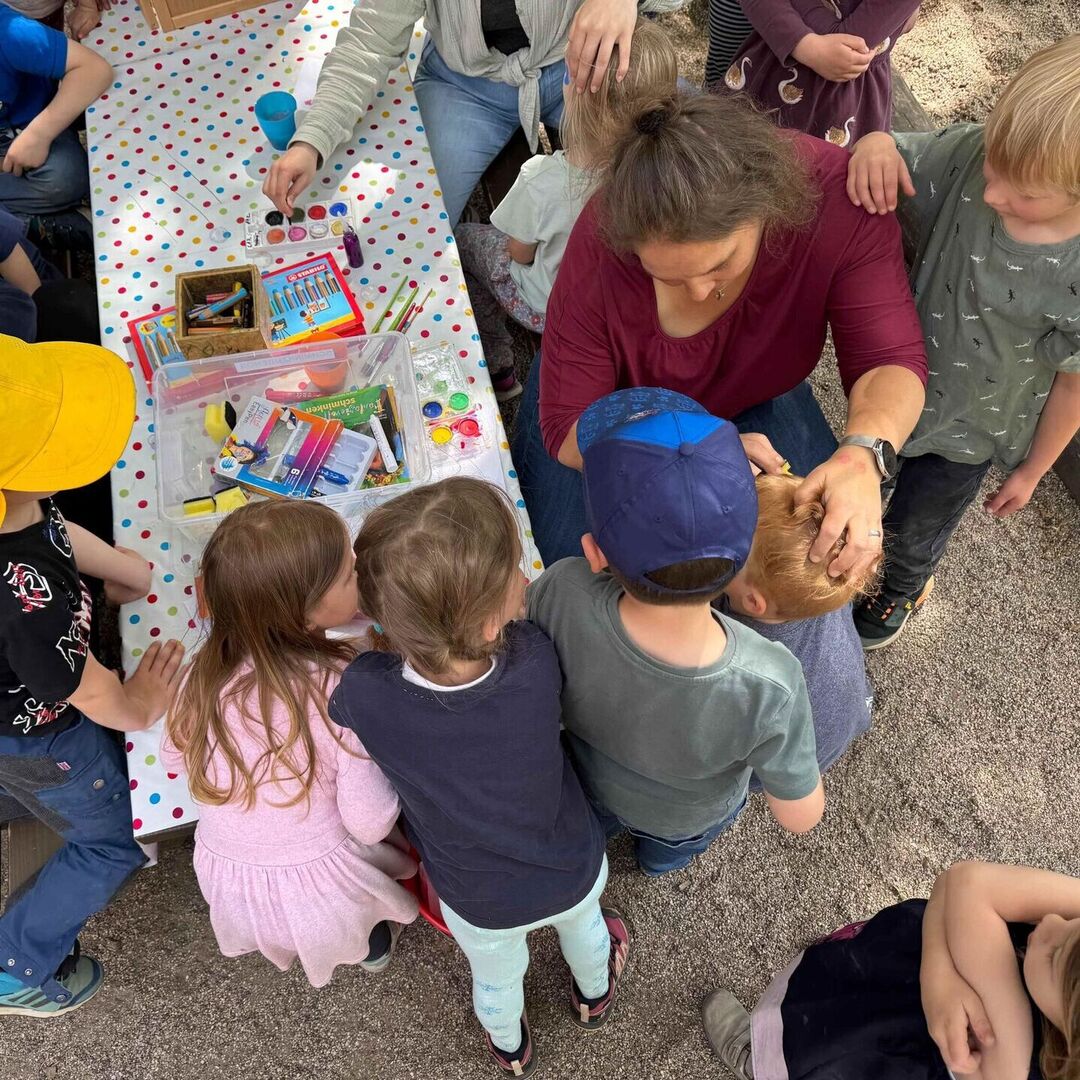Ein besonderes Highlight für unsere kleinen Gäste war das Kinderschminken. Geduldig warteten die Kinder in der Schlange, um sich in Schmetterlinge, Tiger oder Dinos zu verwandeln. Mit viel Liebe zum Detail zauberten unsere kreativen Kollegen wahre Kunstwerke auf kleine Gesichter – und die Kinder trugen ihre neuen “Rollen“ voller Stolz und Freude durch den Garten.