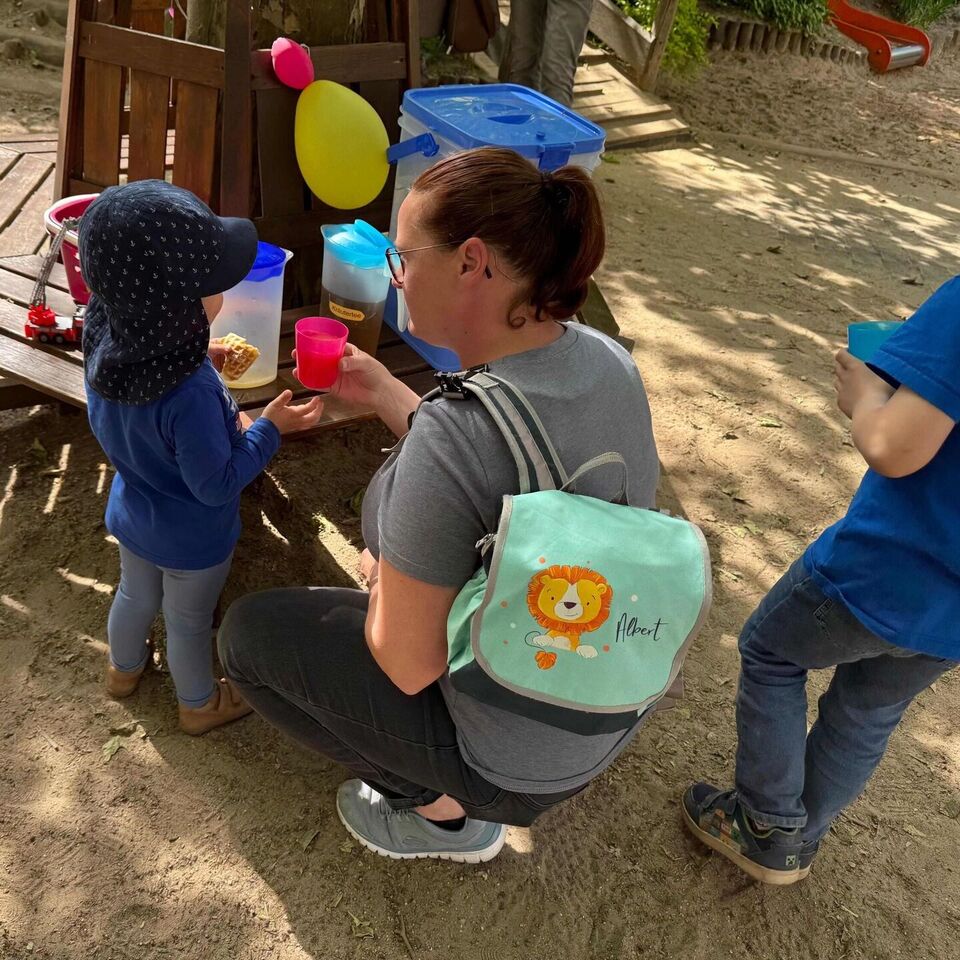 Mindestens genauso beliebt waren die Seifenblasen, die über das Außengelände tanzten. Kinder versuchten begeistert, sie zu fangen, zu pusten oder einfach nur zu beobachten, wie sie in der Sonne glitzerten. Es war ein buntes, fröhliches Treiben.