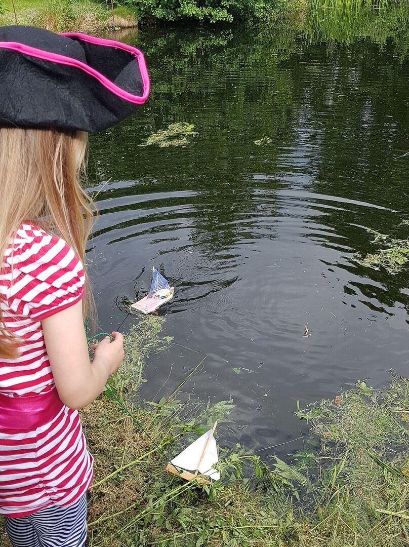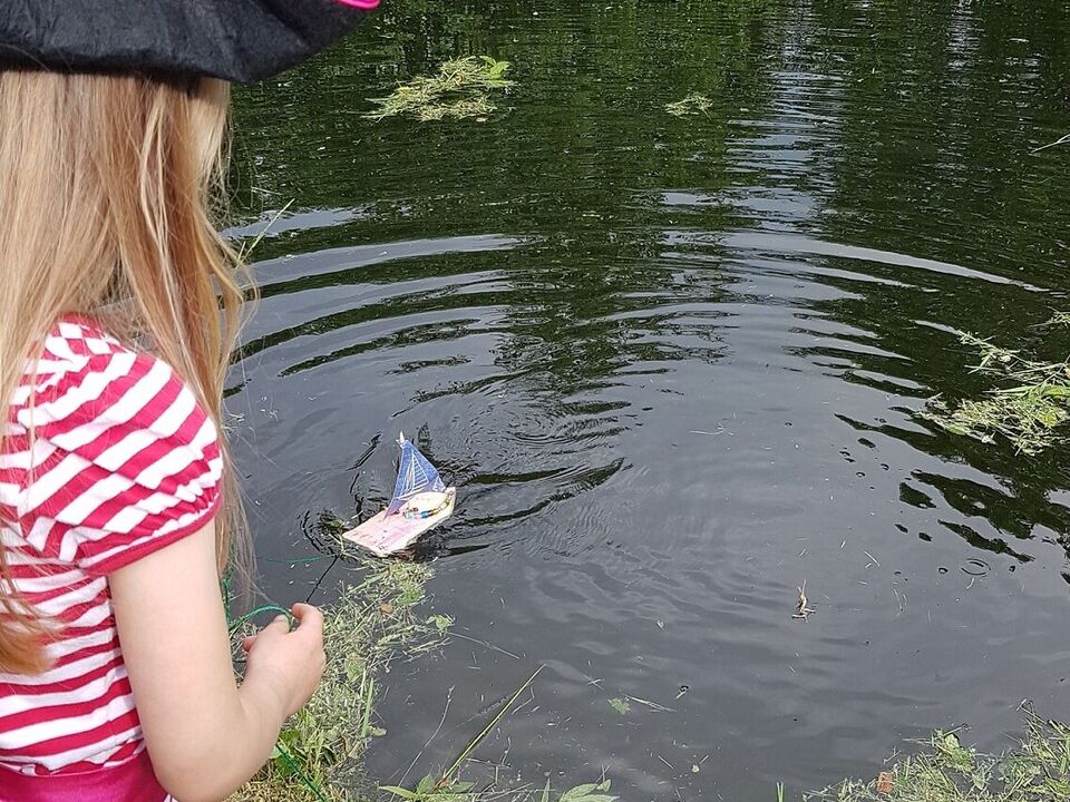 Im Kinderhaus stellten die Kinder mit Hilfe ihrer Eltern das Boot schnell fertig und verzierten es. Natürlich sollte jedes Boot auf Seetüchtigkeit geprüft und zu Wasser gelassen werden. Alle Boote bestanden auf dem benachbarten Teich diesen Test.