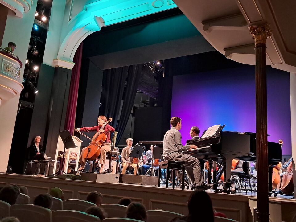 Auch beim Karneval der Tiere waren die Kinder aufmerksam bei der Sache. Der Pianist saß in unserem Blickfeld, so dass die Kinder begeistert seine Handbewegungen imitierten. Besonders eindrucksvoll war das Musikstück zum "Schwan". Die Kinder lauschten den Klängen der Cellistin.