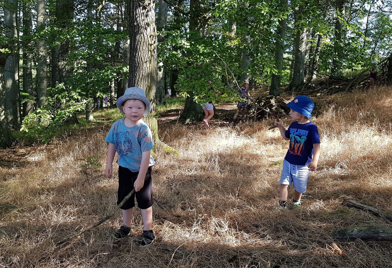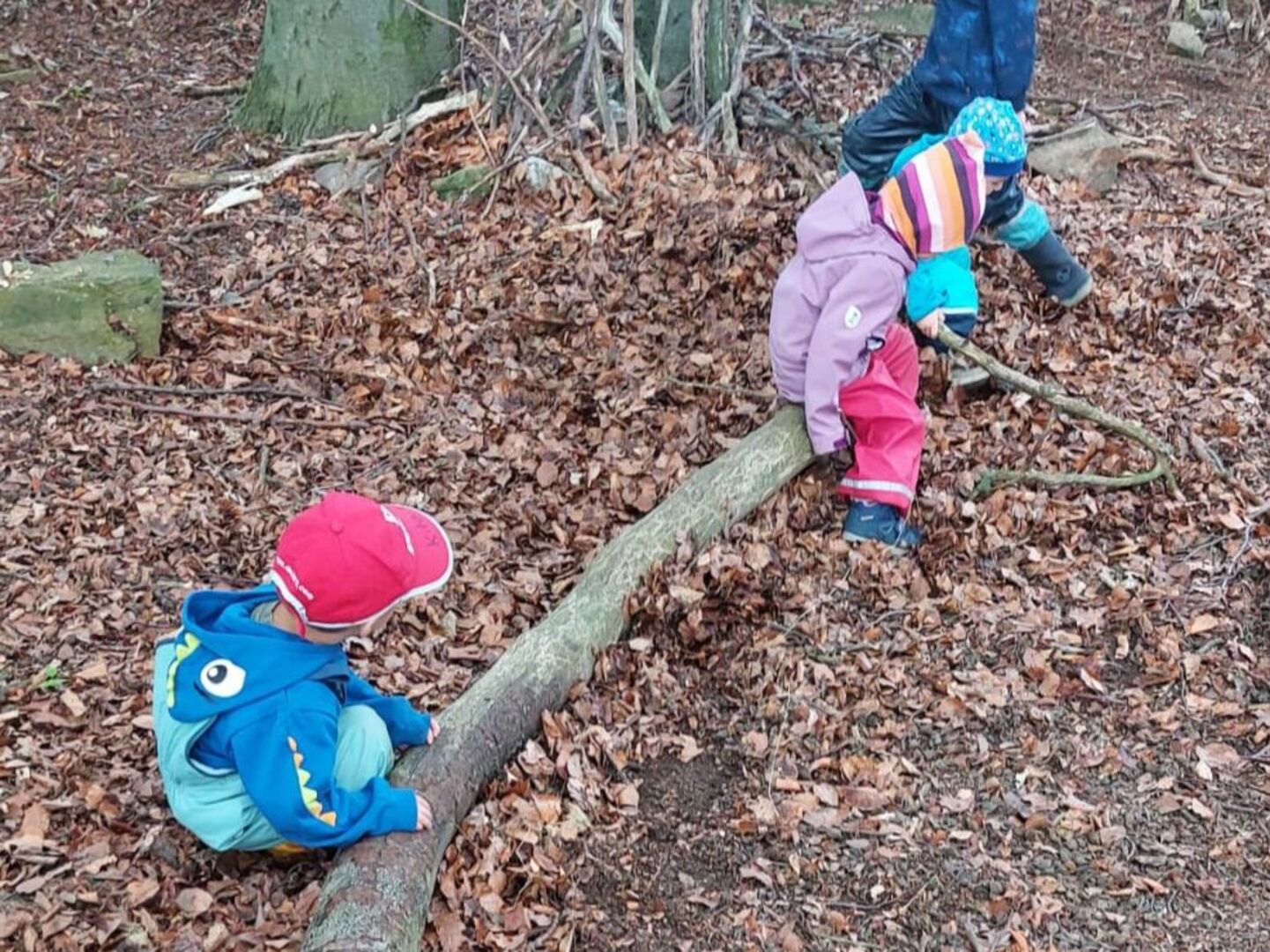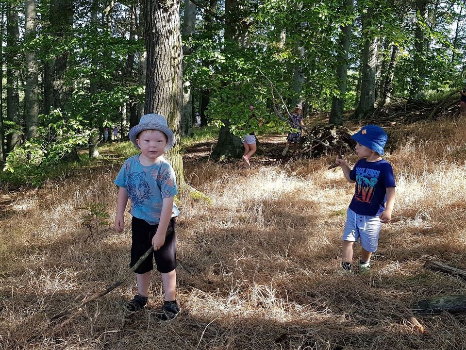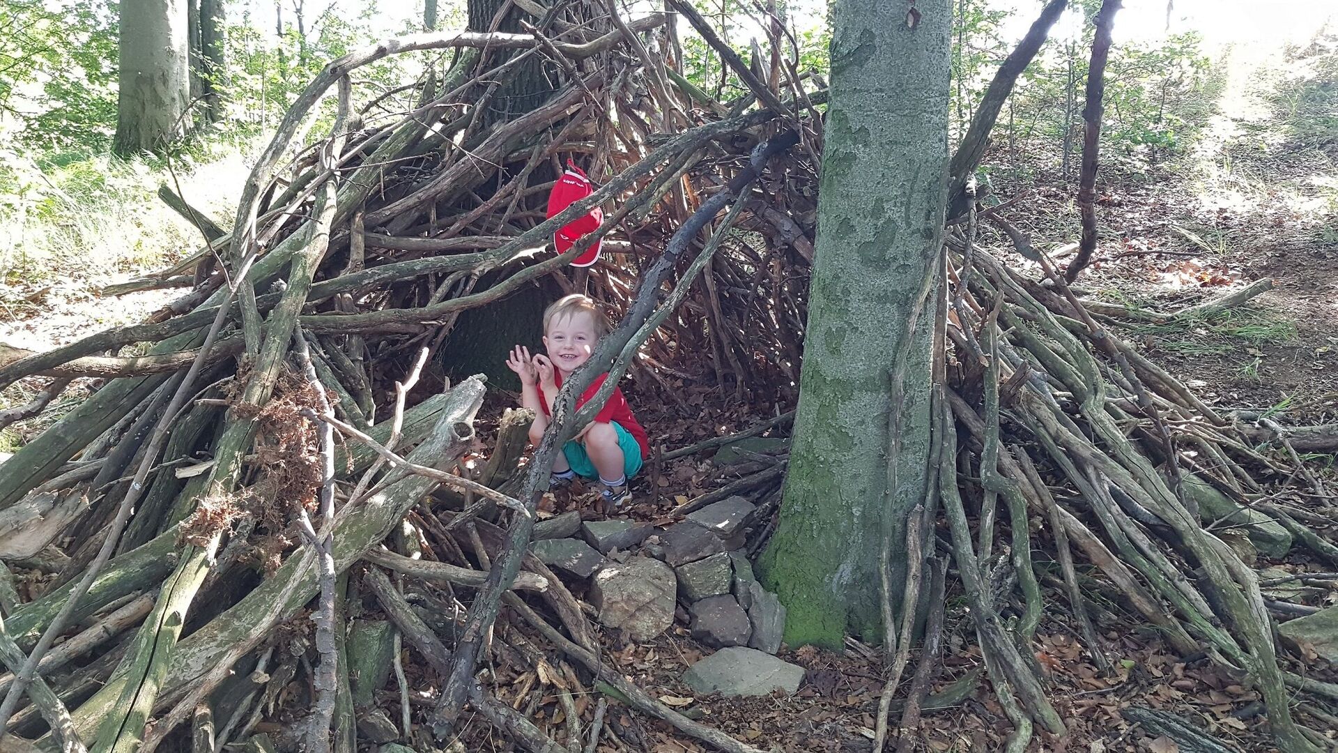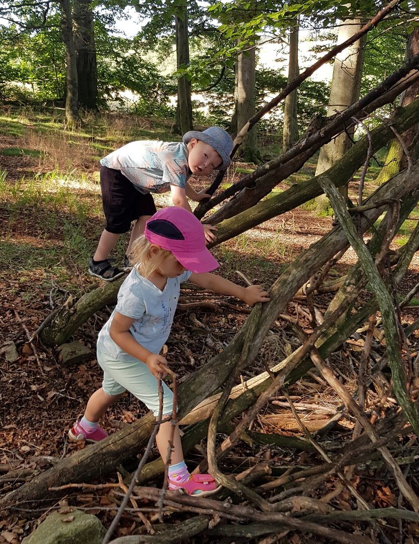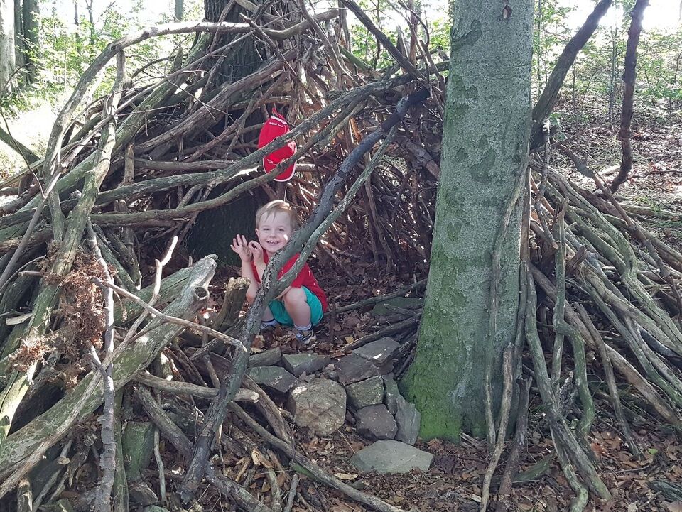 Mit Buden bauen oder Marhsmallows über dem imaginären Feuer rösten versinken die Kinder im kreativen Rollenspiel im Wald.