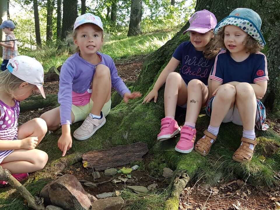 Die Kühle des Waldes lädt die Kinder und Erzieherinnen des Ankerplatzes ein, der Hitze des Sommers zu entfliehen.