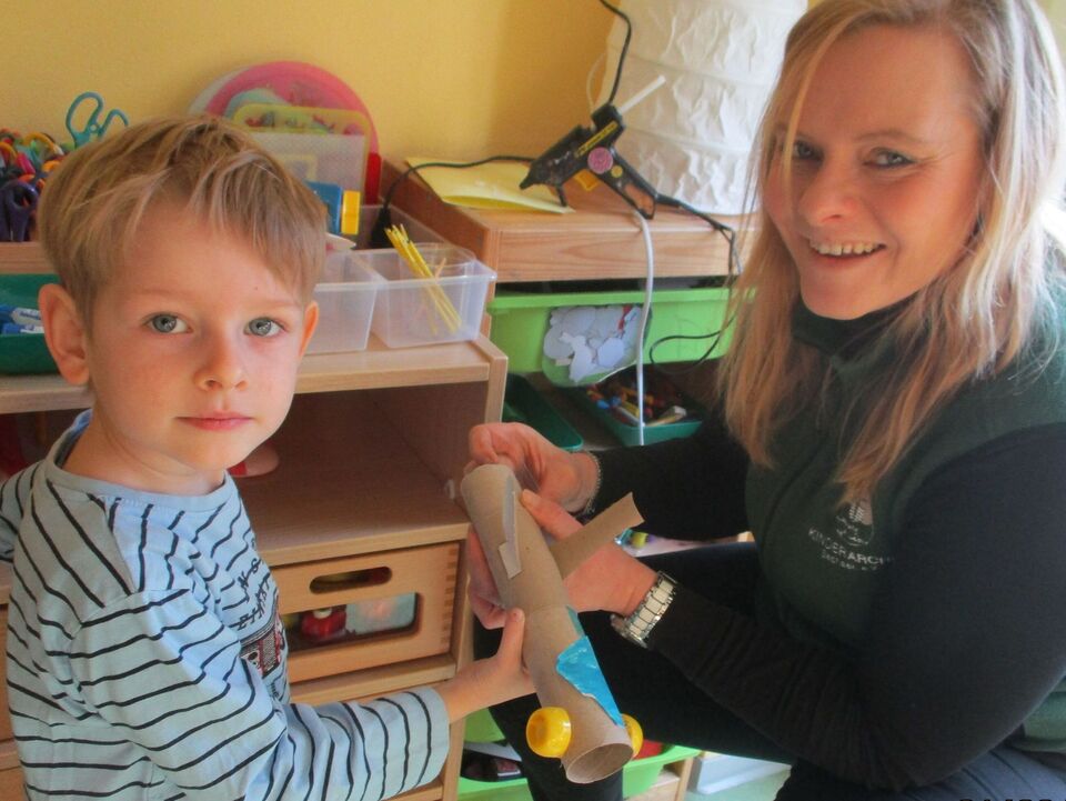 Voller Fantasie und Begeisterung wurde viel ausprobiert und experimentiert. Aus verschiedenen Materialien entstanden Gebäude und Fahrzeuge. Lange Pappröhren wurden zu Kugelbahnen oder zum Springparcours für die Pferde. Jeden Tag wurde gespielt, gebastelt, geschnitten, angemalt und geklebt.
