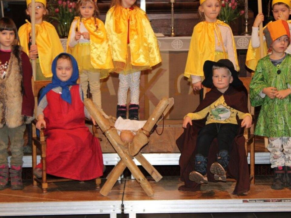 ... führen die Kinder der integrativen christlichen Kita „Riesenzwerge“ ihr Krippenspiel auf. Jedes Jahr ist es das gleiche Stück und doch ist es jedes Jahr anders und besonders schön. Die Kinder, die es aufführen, machen es besonders.