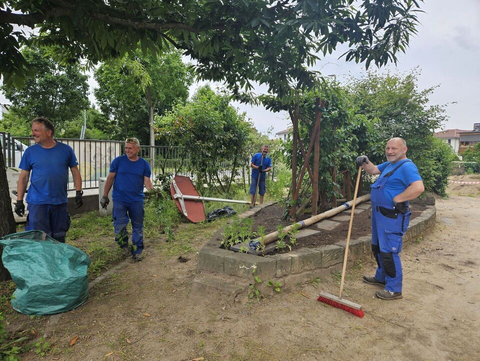 Insgesamt 16 engagierte Mitarbeitende, darunter viele aus der Buchhaltung und fünf hervorragend ausgestattete Hausmeister, kamen für einen gemeinsamen Arbeitseinsatz vorbei.