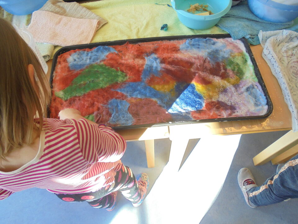 Wolle hält warm – wie gut bei diesem schönen Winterwetter. Aber sie kann auch beim Filzen verwendet werden. So nutzten wir die Winterferien mit den Hortkindern und Kindergartenkindern in unserer Kita „Unterm Regenbogen“ auch zum Filzen. Neben Kleinigkeiten zum Mitnehmen, entstanden die ersten Blüten für unseren „Tag der Sachsen“ in Sebnitz in diesem Jahr – gemäß dem Motto „Auf blühende Erlebnisse“.