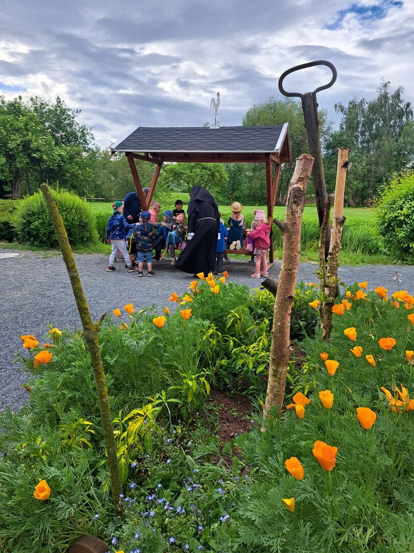 Schwester Isolde, alias unserer ehrenamtlich engagierten Kerstin Schunke, nahm unsere interessierten Kinder mit auf eine kleine Reise in die Vergangenheit. Wir bestaunten den riesengroßen Backofen in der Klosterschule, den liebevoll angelegten Klostergarten und die sanierten Gewölbe im Erdgeschoss des Witwenhauses.