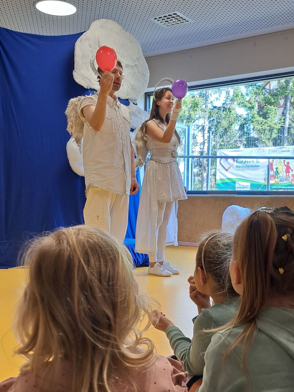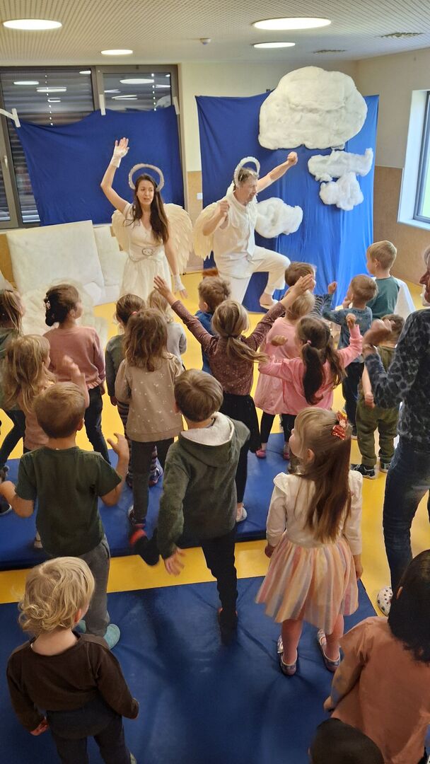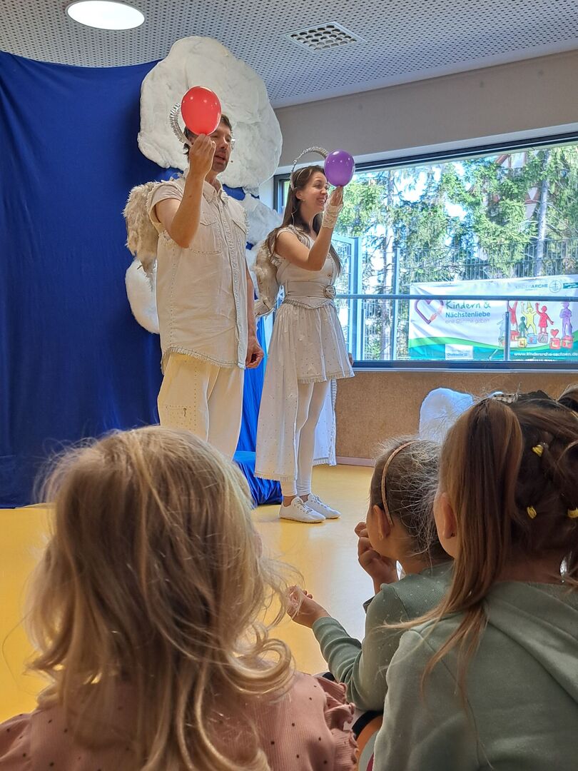 Mit viel Witz, Freude und einer sehr wichtigen Botschaft verzauberten heute die beiden Engel Gabriele und Ludwig die Kinder der Kita Kinderoase.