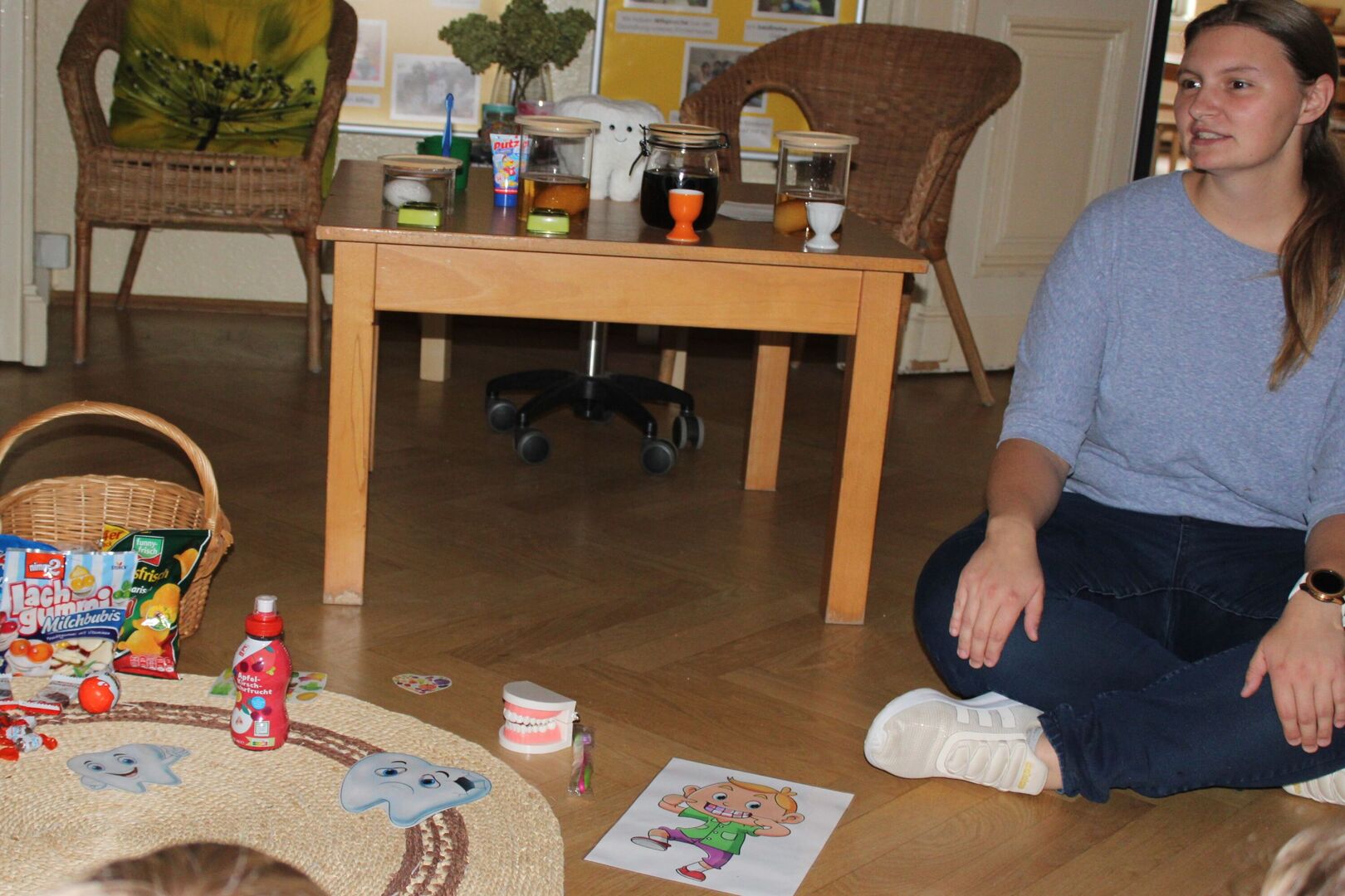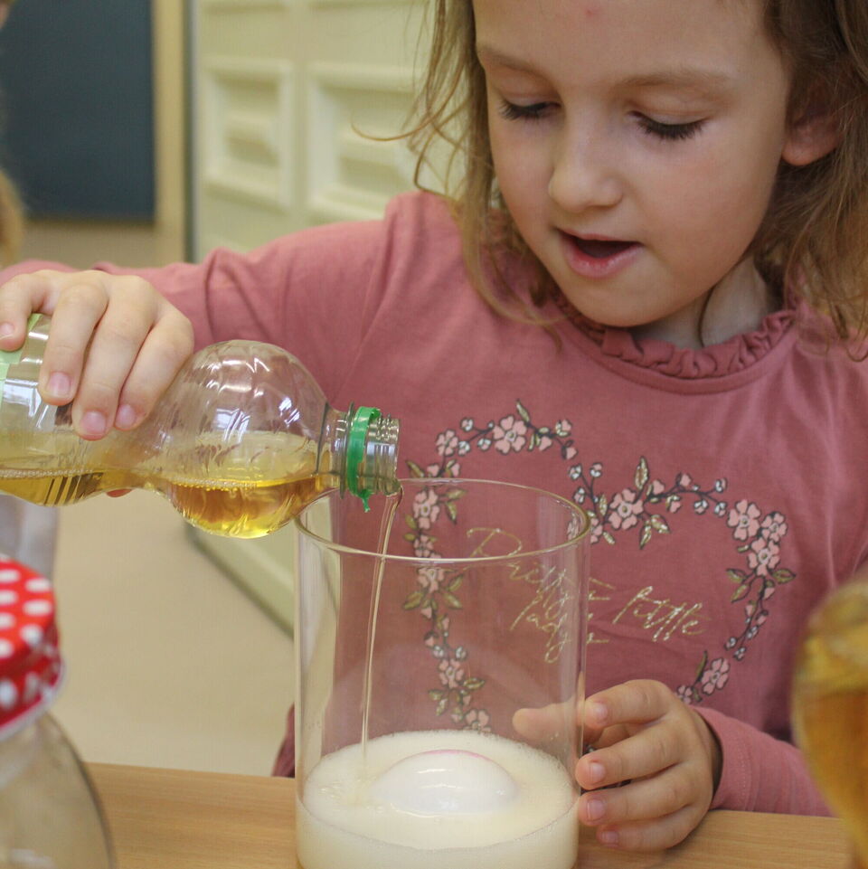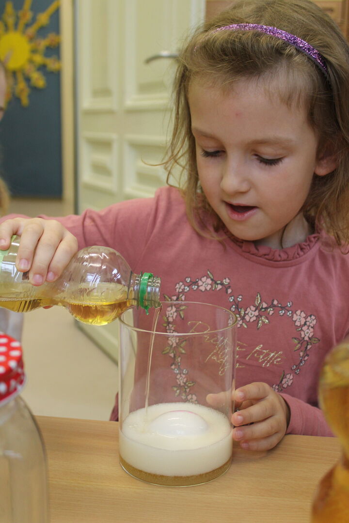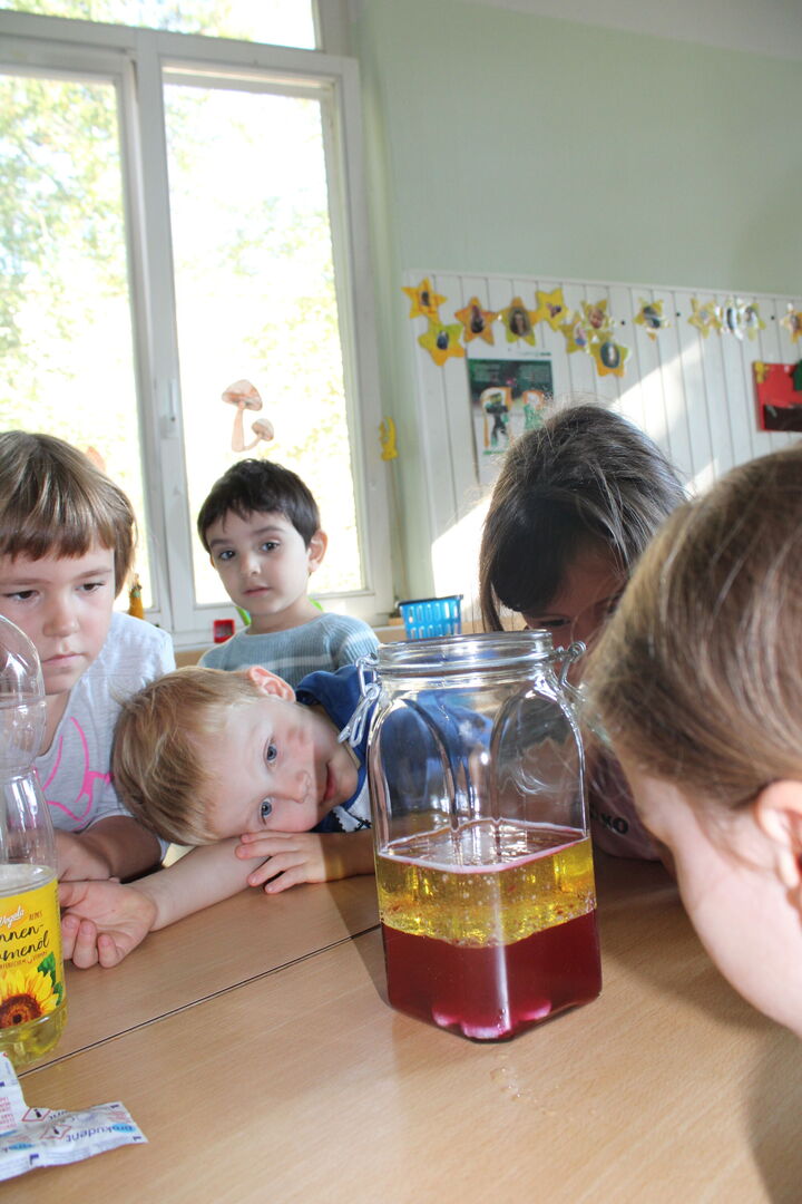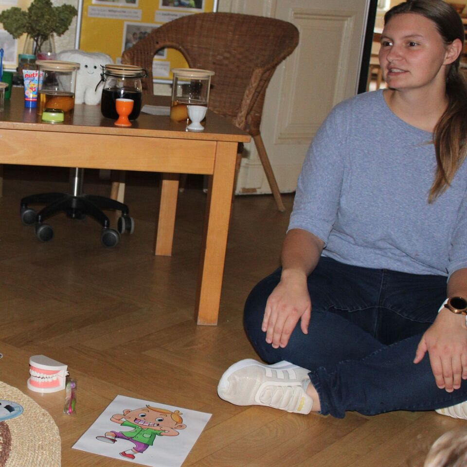 Rund um den „Tag der Zahngesundheit“ am 25.September, welcher in diesem Jahr unter dem Motto: „Von Anfang an!“ stand, sensibilisierten wir die Kinder für die richtige Mund- und Zahnhygiene. Neben einem großen Morgenkreis, welcher die zahnfreundliche Ernährung in den Blick nahm, fanden die Kinder anhand von Experimenten heraus, welchen Einfluss Getränke auf die Zahngesundheit nehmen können.
