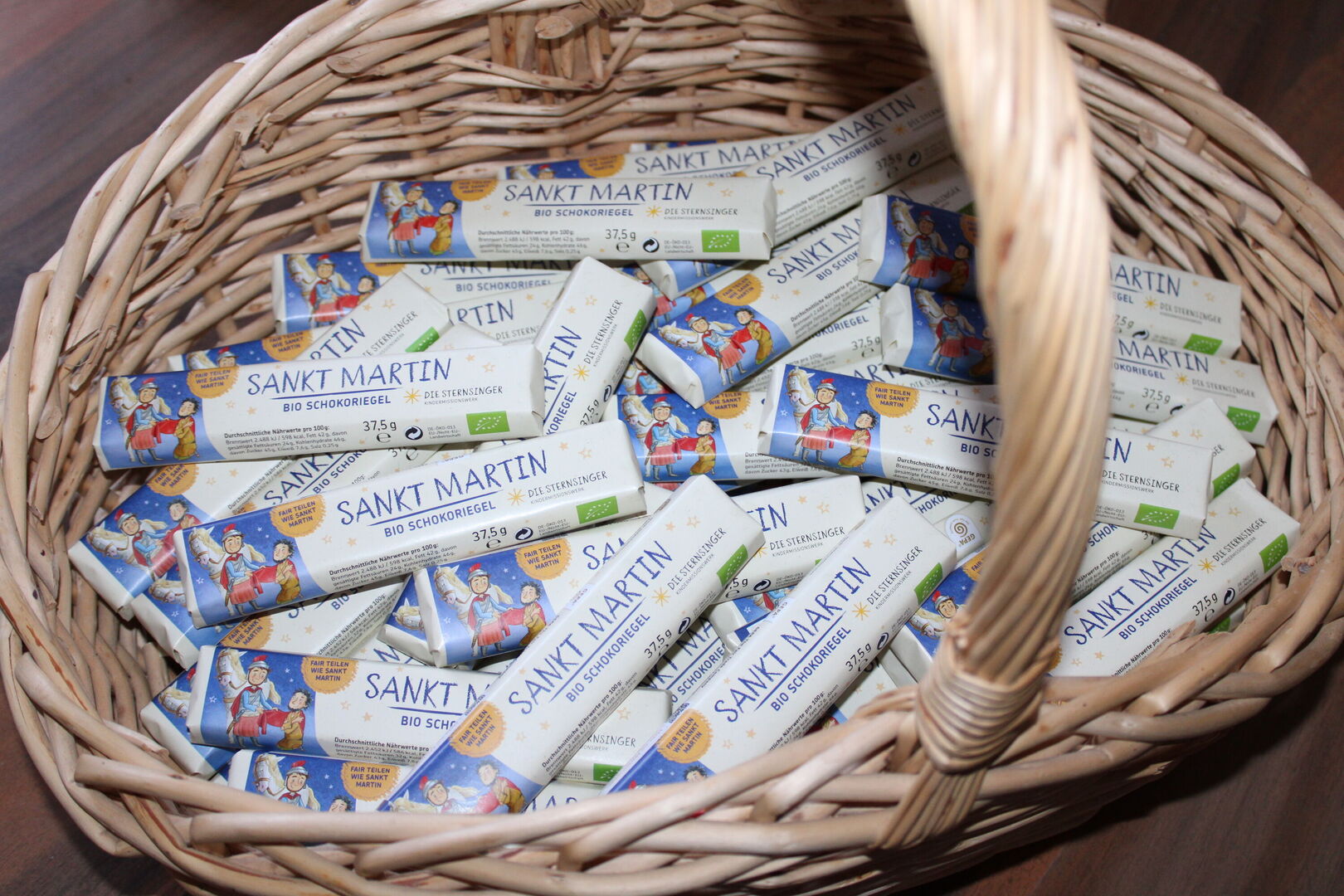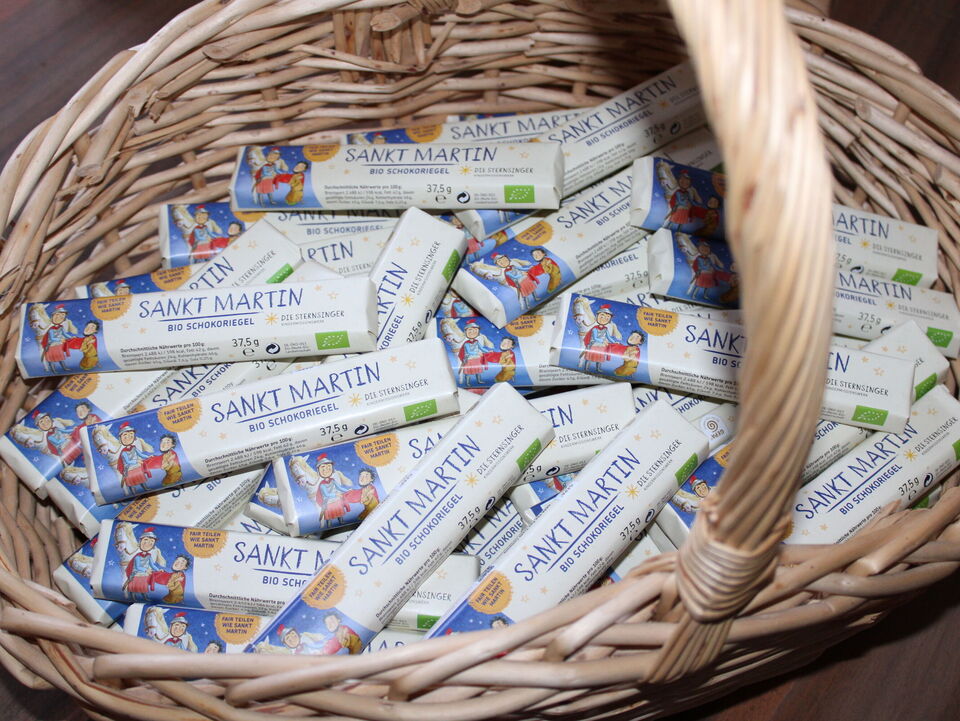 Um den Gedanken des Teilens auch mit in die Familien zu tragen, konnte jeder Sterntaler noch einen St. Martin Schokoriegel mit nach Hause nehmen. Am Nachmittag begleiteten viele unserer Kinder den Heiligen Sankt Martin zum Umzug in unserer Stadt und brachten ihre während der Herbstfestwoche selbst gebastelten Laternen zum Leuchten und trugen damit ein Licht der Hoffnung in die Novemberdunkelheit.