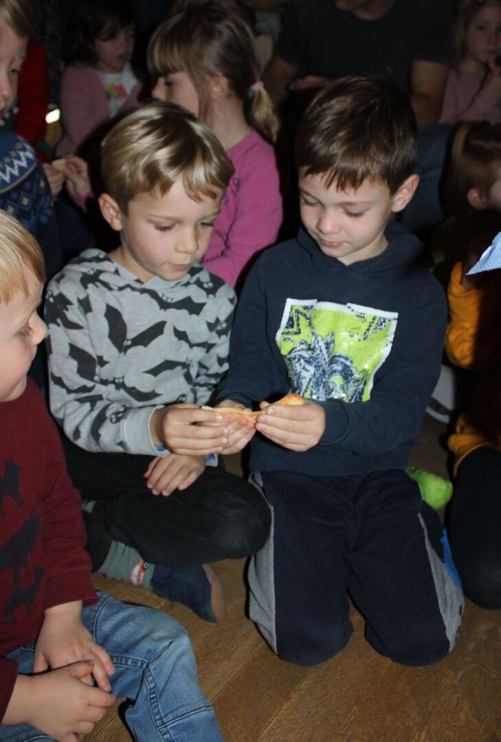Jedes Jahr am 11. November sind die „Sterntaler“ traditionell eingeladen, im großen Morgenkreis der Geschichte vom heiligen St. Martin zu lauschen. So auch in diesem Jahr. Da der 11. November aber in diesem Jahr auf einen Samstag fiel, trafen sich schon am 10. November alle Sterntaler auf unserer großen Diele.