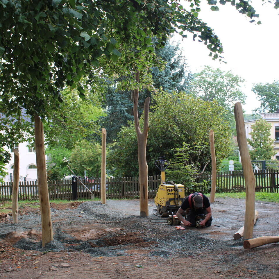 Unsere „Sterntaler“ lieben es an der frischen Luft zu spielen, kreativ zu sein oder sich zu bewegen. Neben dem Klettern, Rennen und Fußball spielen, suchen sie oft die Gelegenheit, sich zurückzuziehen, um sich auszuruhen und die Seele baumeln zu lassen. Bisher nutzten die Kinder dafür unter anderem unseren Sinnespfad. Dieser war mittlerweile allerdings in die Jahre gekommen und entsprach nicht mehr den geforderten Sicherheitsstandards. Daher wollten wir unseren Garten durch einen neu gestalteten Ruhebereich bereichern.