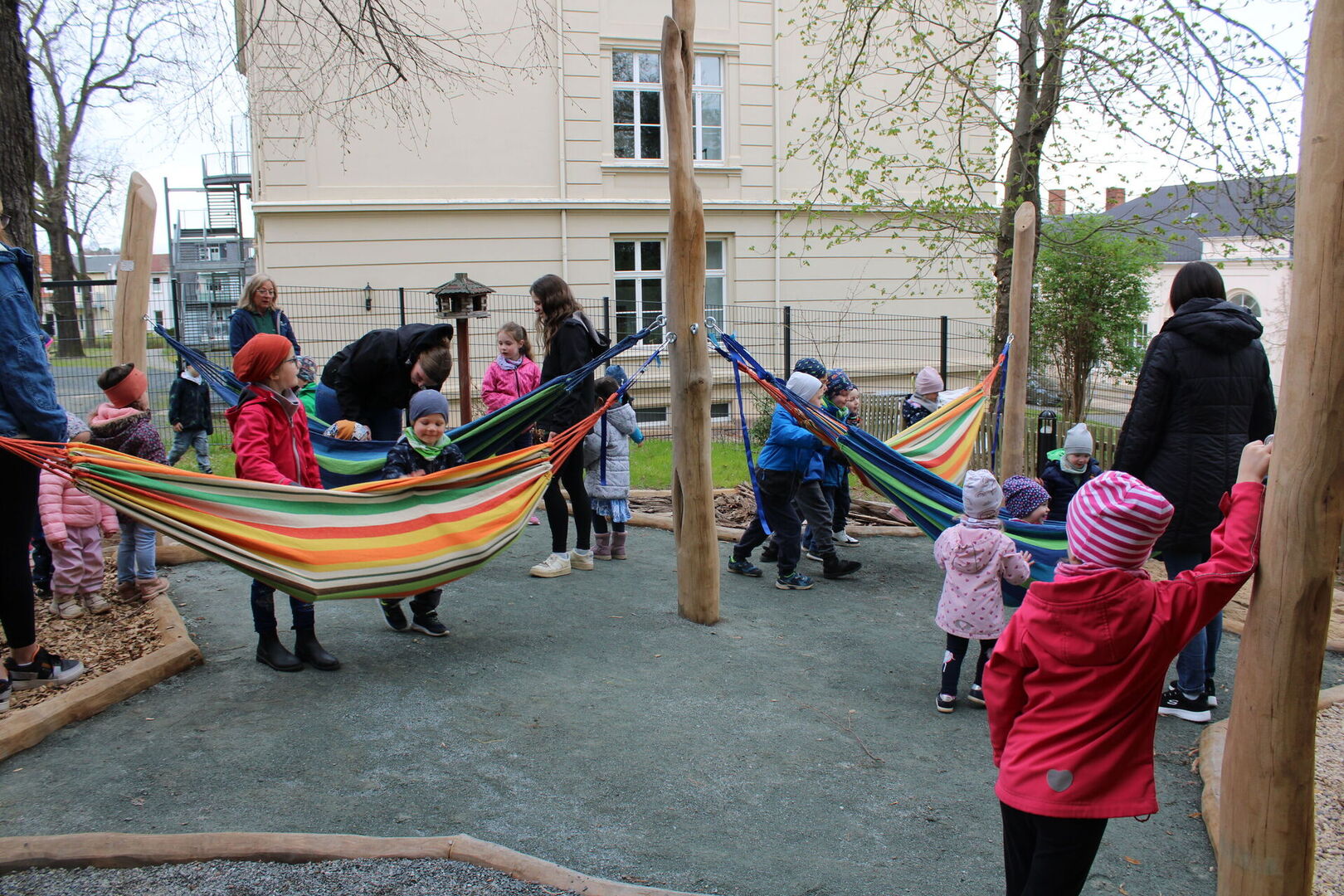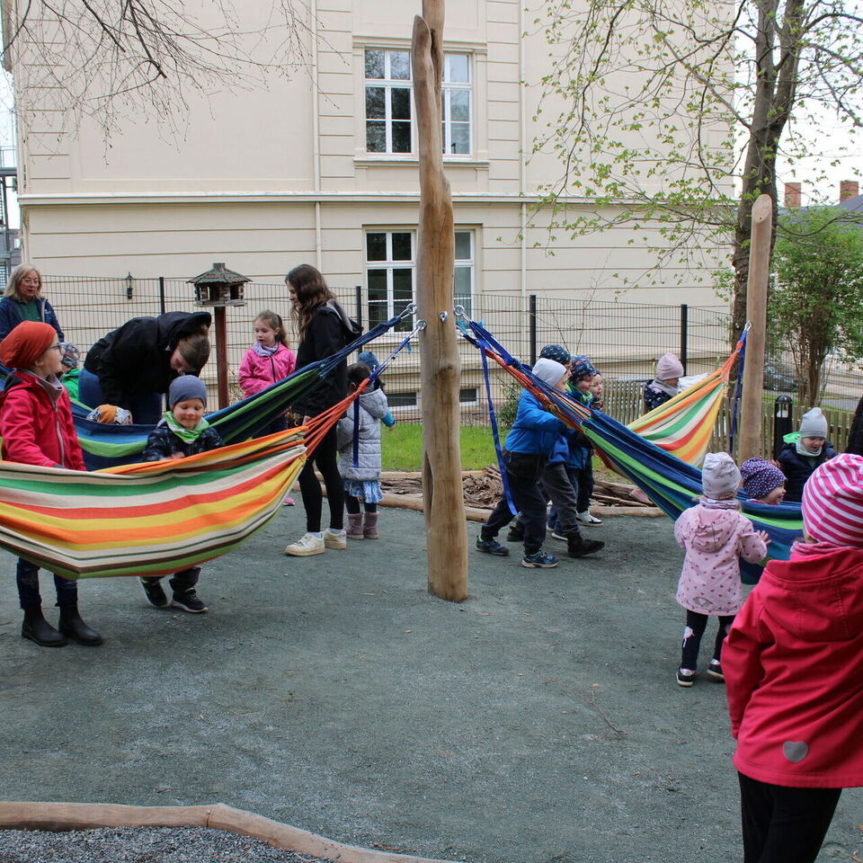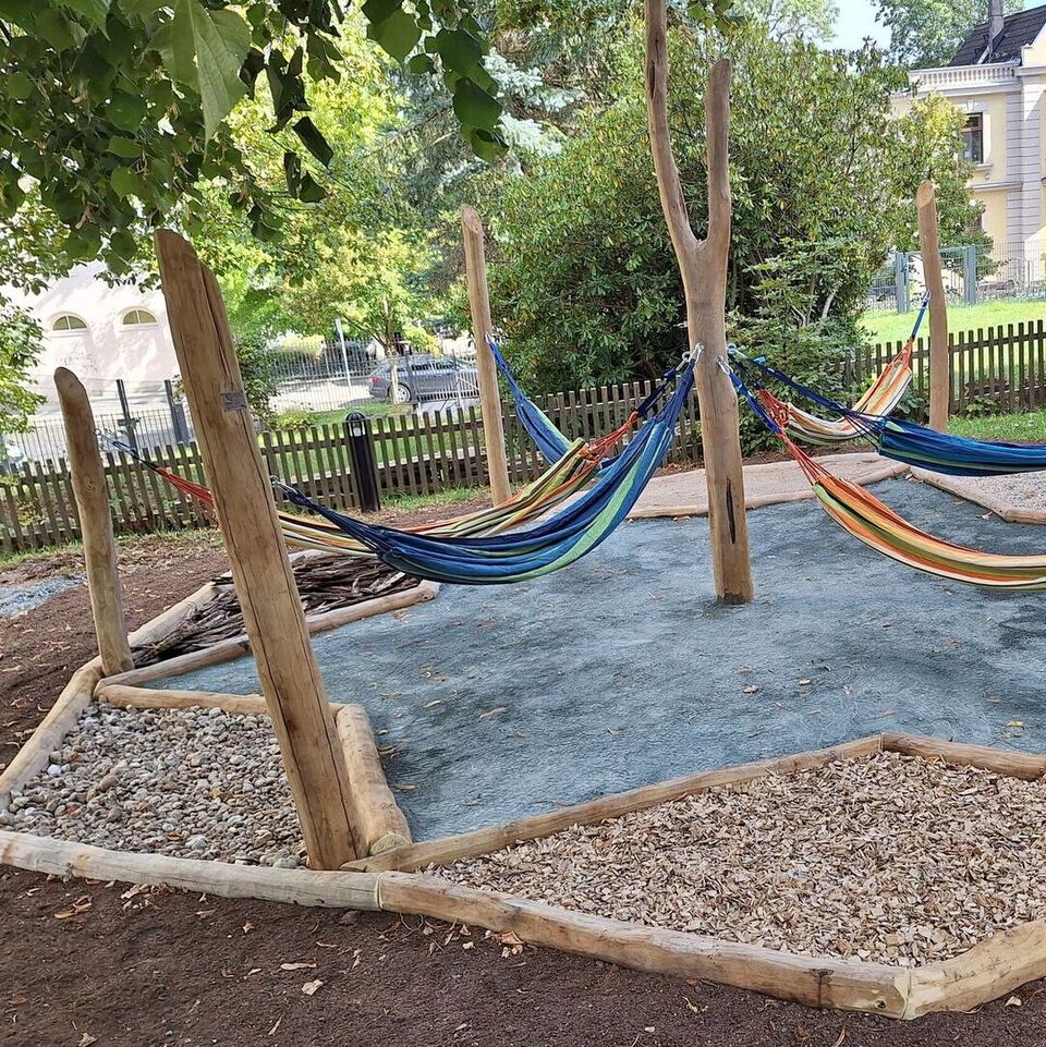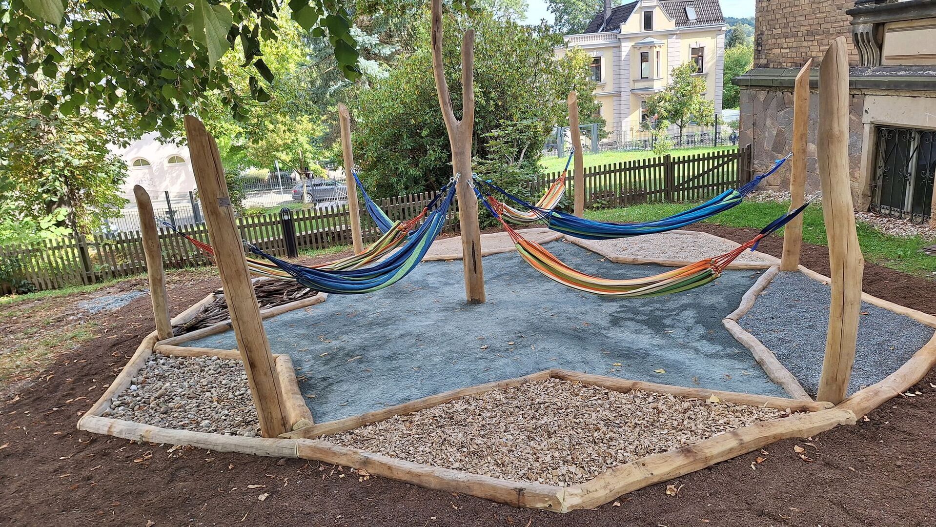 Die „Sterntaler“ wünschten sich schon seit einiger Zeit Hängematten, um allein oder mit anderen zwischen all ihren Erlebnissen Ruhe zu finden und ihre Eindrücke zu verarbeiten. Am 3. April 2024 war es dann endlich soweit. Wir konnten den Kindern ihre neue „Ruheoase“ übergeben, welche sie sofort in Besitz nahmen. Mit dieser neu gestalteten Ruheoase möchten wir den Kindern Gelegenheit geben, es sich gemütlich zu machen, ein Buch anzuschauen oder ihren Tagträumen nachzuspüren. Wir sind glücklich, dass wir den Mädchen und Jungen diesen Herzenswunsch erfüllen konnten.