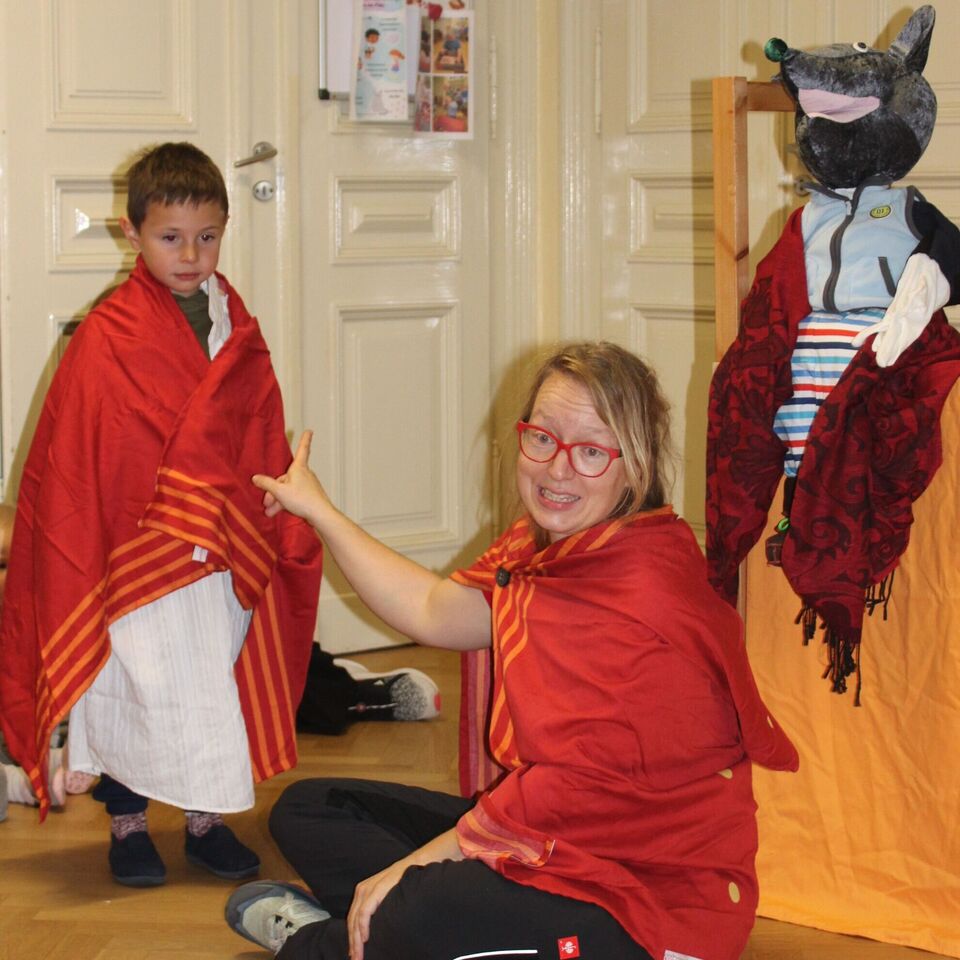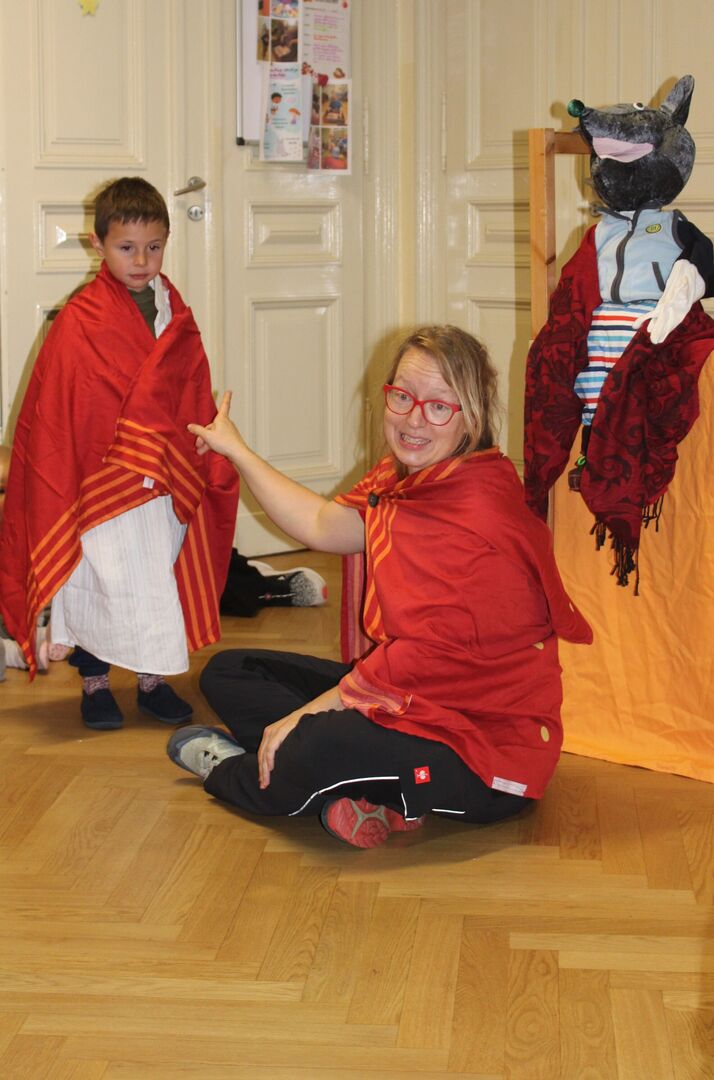 Gemeinsam mit der Religionspädagogin Anett Erler spielten die Kinder die Geschichte vom heiligen Sankt Martin.