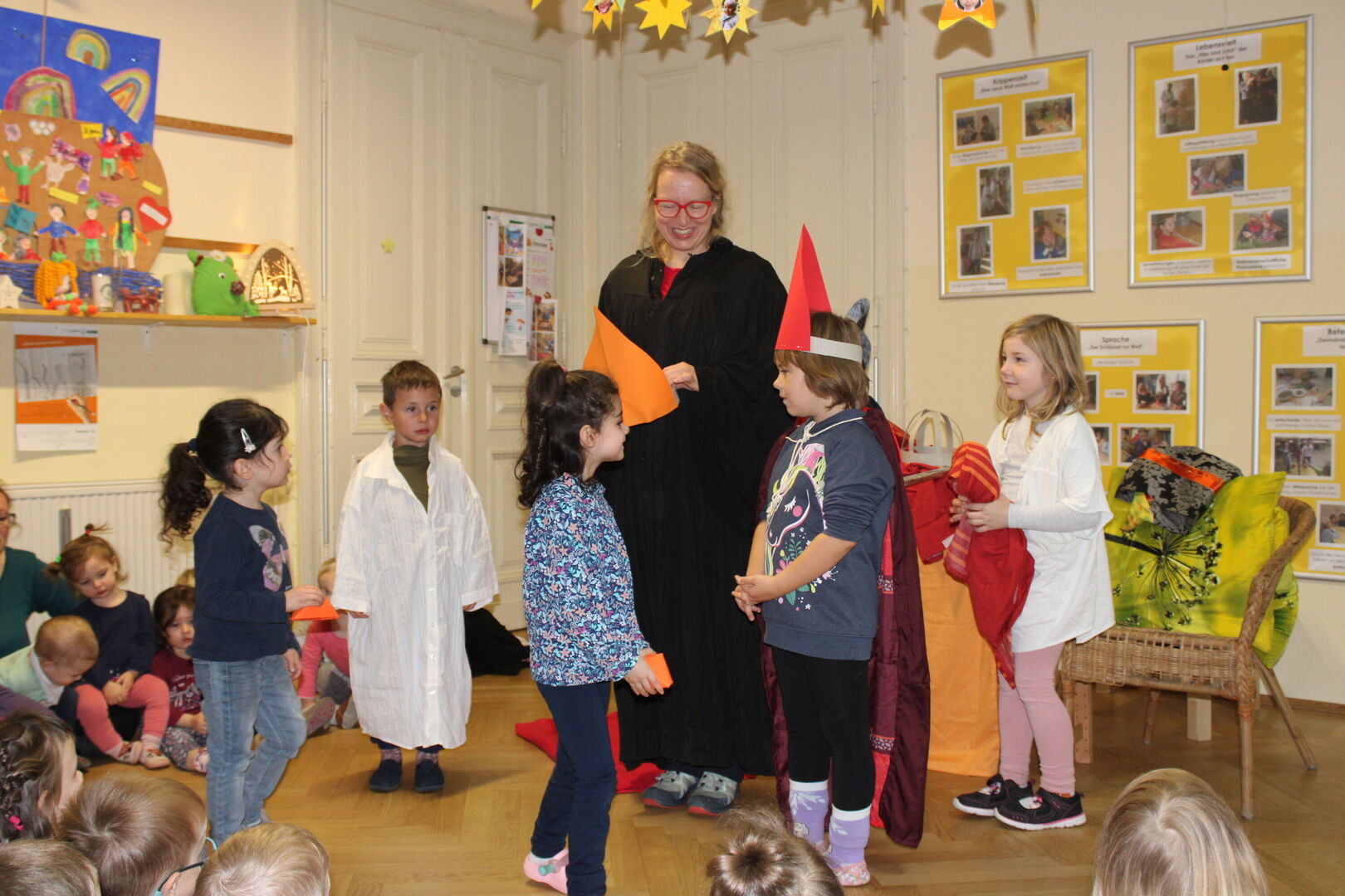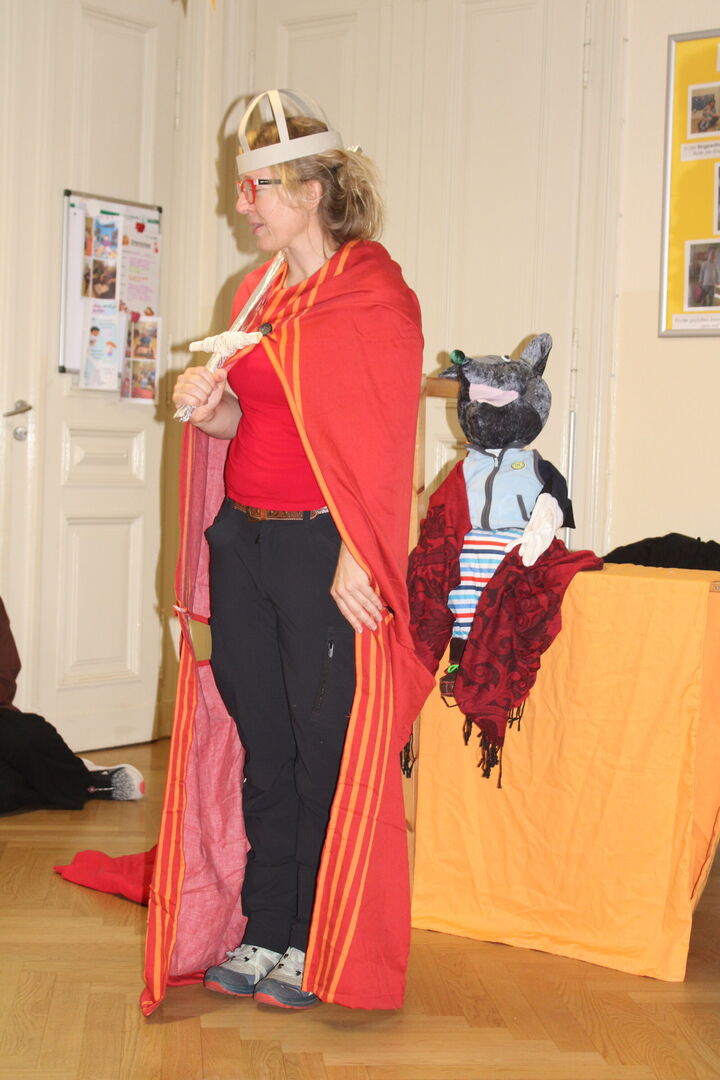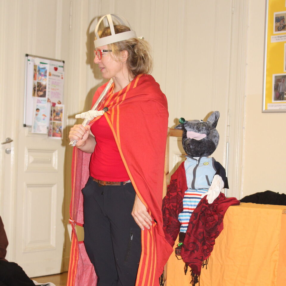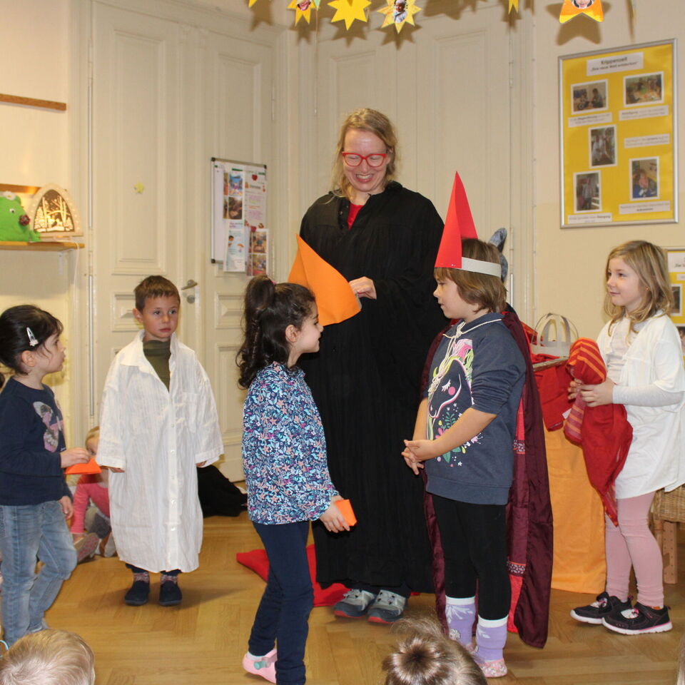 In diesem Jahr haben wir uns dazu unsere Religionspädagogin Anett Erler eingeladen, welche zusammen mit der bei den Kindern beliebten Maus Paparazzo einen großen Morgenkreis gestaltete. Dabei bekamen sie Unterstützung von einigen unserer Sterntaler. Diese spielten die Geschichte vom heiligen Sankt Martin, welcher seinen Mantel mit einem Bettler teilte und vermittelten auf eindrucksvolle Weise die Botschaft für ein liebevolles, empathisches Miteinander.