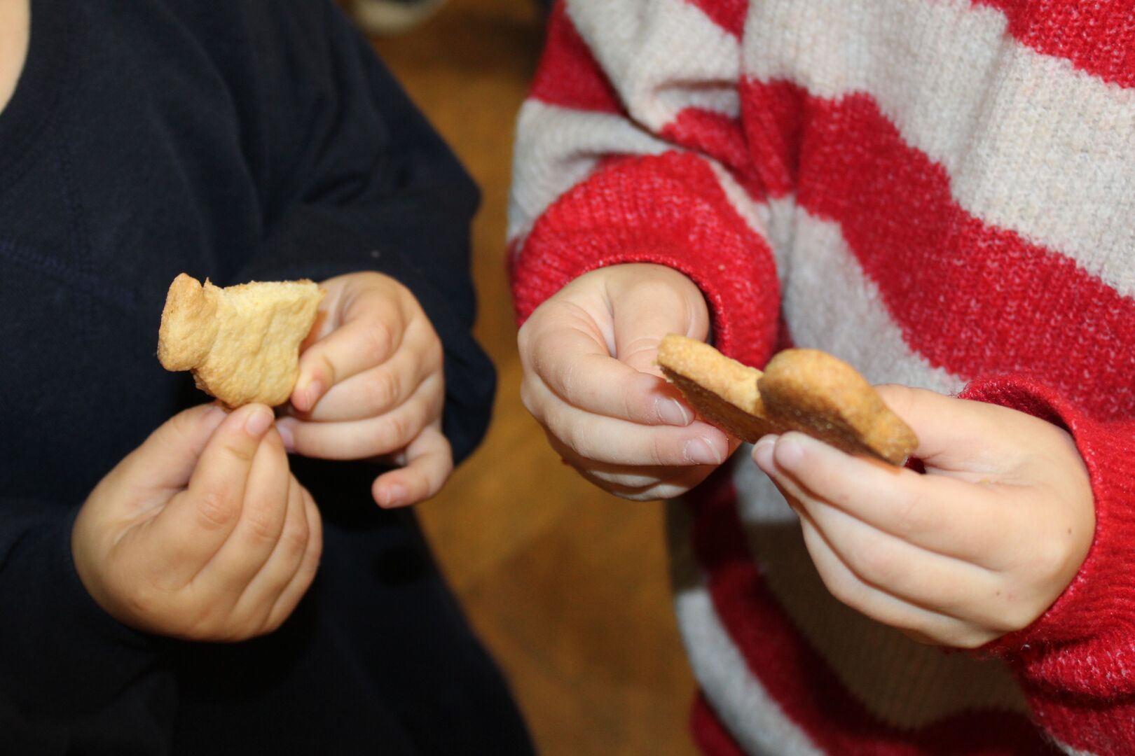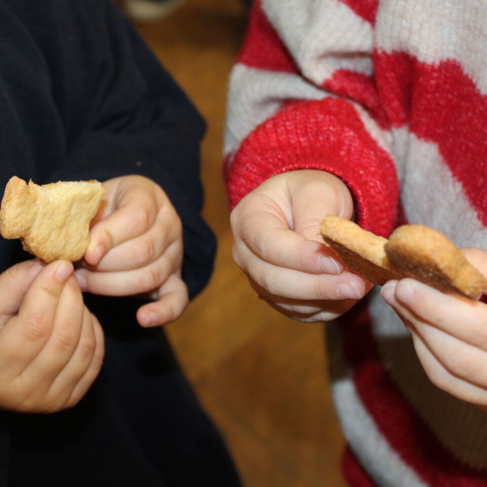 Im Vorfeld hatten die Kinder lustige und ganz individuelle Martinsgänse gebacken. Es war sehr berührend anzusehen, mit welchem Selbstverständnis die Kinder ihre Gänse nun im Morgenkreis miteinander teilten.
