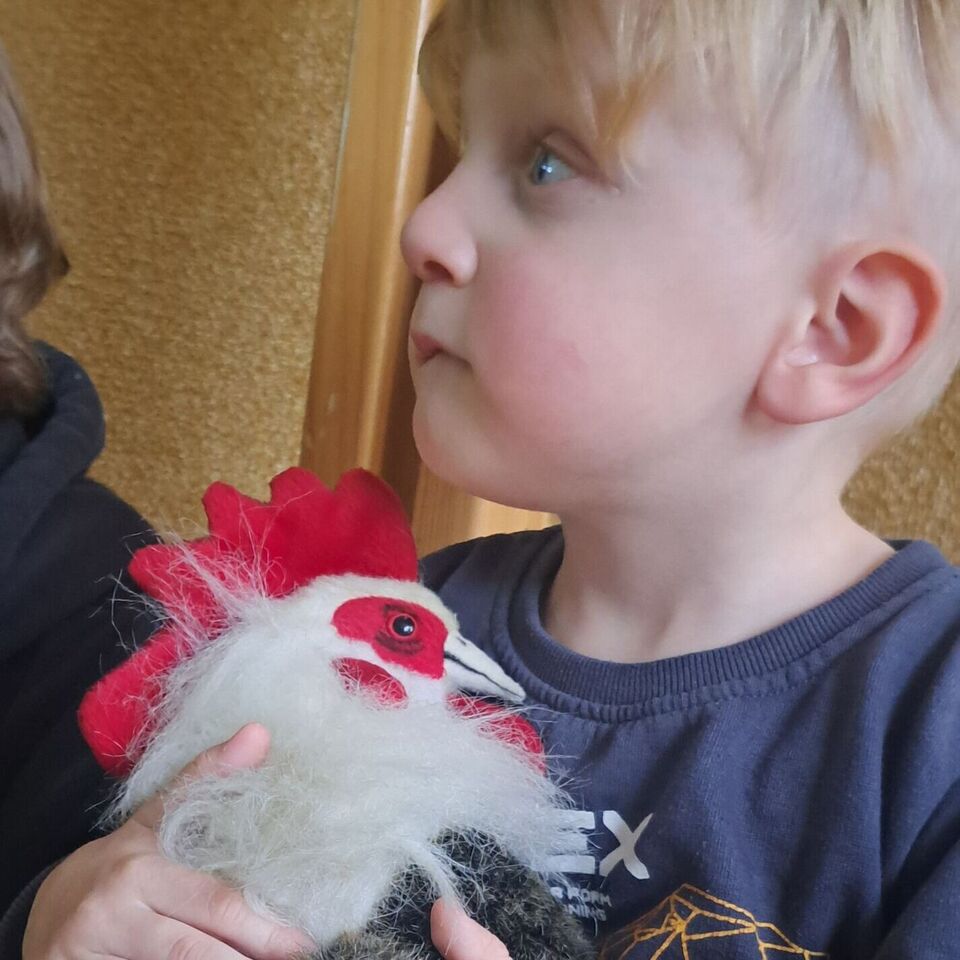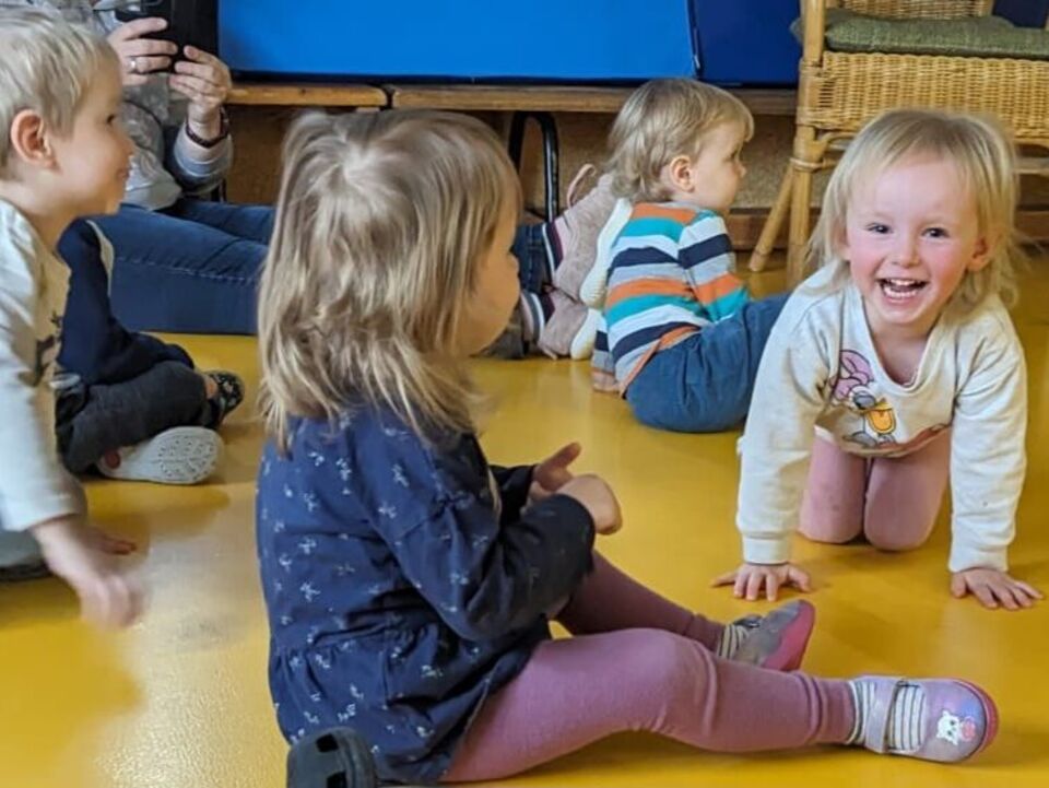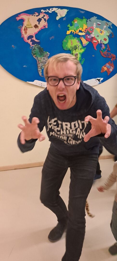 Alle Kinder lauschten gespannt der Erzählung von Herrn Meister, und die unzähligen Mitmachmomente sorgten für eine fröhliche Stimmung in unserem zum Theater umfunktionierten Bewegungsraum.