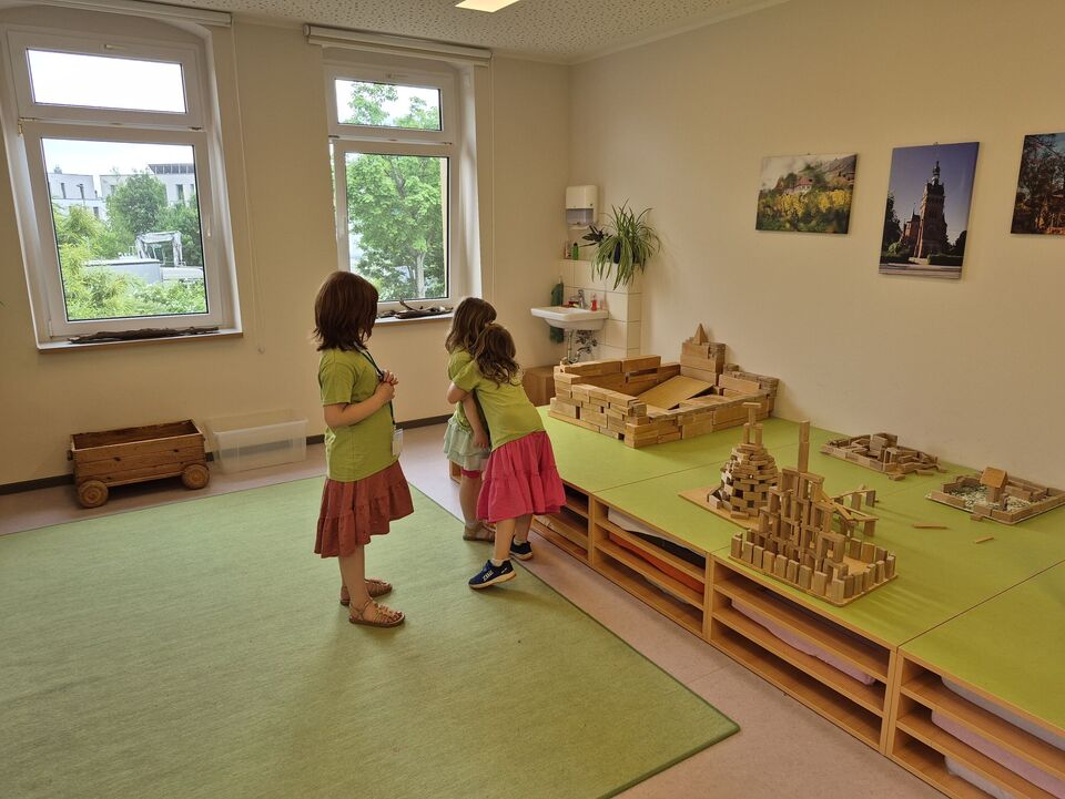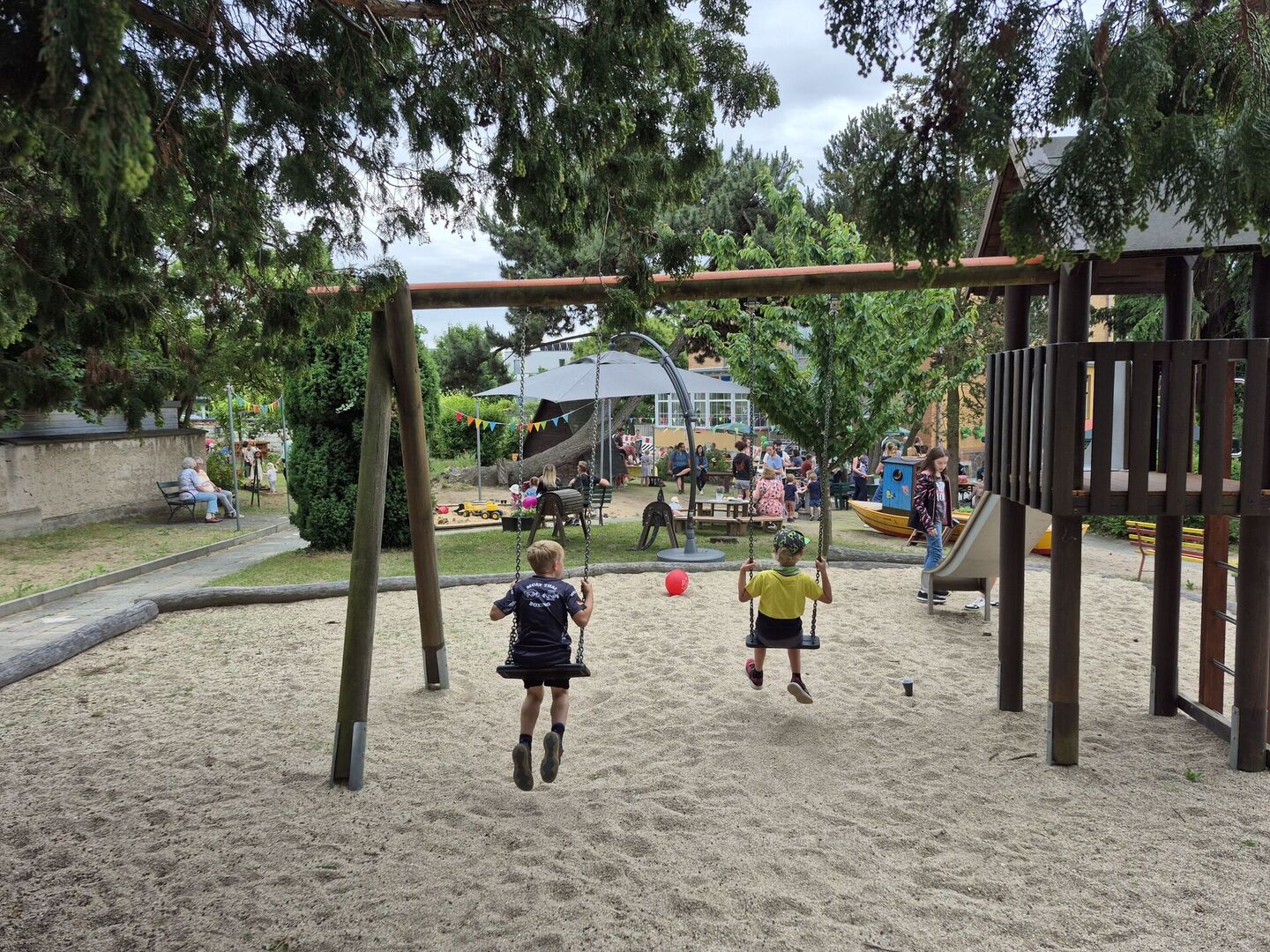 Im Rahmen eines feierlichen Tags der offenen Tür hießen Vorständin Barbara Gärtner und Einrichtungsleiterin Birgit Prochno zahlreiche Gäste willkommen. Darunter Eltern, Kinder, Vertreter:innen der Stadt Radebeul, das Architekturbüro architektur4, engagierte Handwerker sowie langjährige Wegbegleiterinnen und Wegbegleiter unserer Einrichtung.