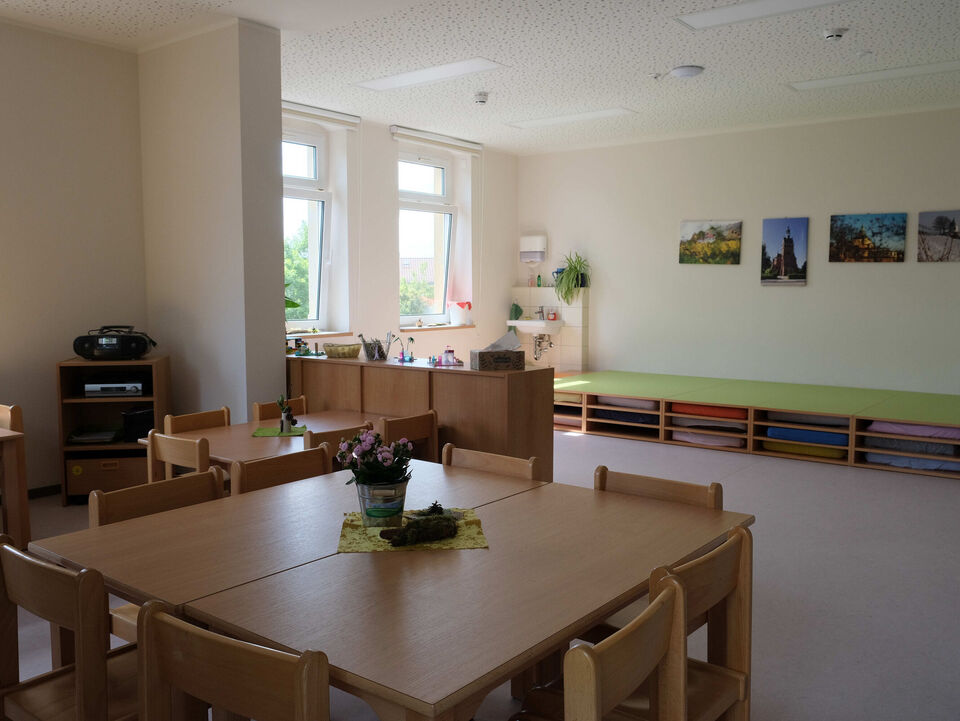 Auf die Frage, was ihnen in der neuen Kita am besten gefällt, sagen Ida und Annie wie aus einem Mund: „Alles!“ Und Ida ergänzt noch: „Es ist fast so schön wie zu Hause, nur dass es hier keine Barbies gibt…“ An Spielzeug mangelt es den Kindern im „Kinderkreis Natur, Heimat und Gesundheit“ jedoch trotzdem nicht: seien es die Holz- und Lego-Bausteine im Bauzimmer, die vielen Kostüme im Rollenspiel-Bereich oder die Bastelmaterialien in der Kreativ-Ecke.