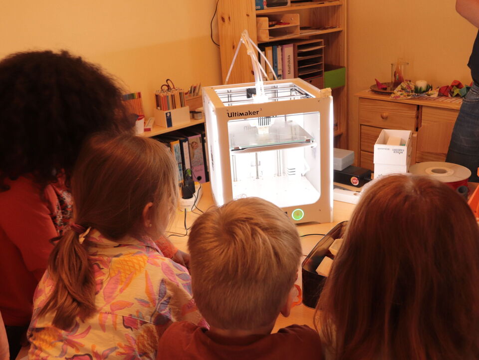 Wir haben zwar kein echtes Haus ausgedruckt, aber ein kleines Modell. Die Begeisterung bei den Kindern war riesengroß. Schon alleine das Aufbauen und Anschließen des Druckers hat seine Zeit gedauert und wir sind aus dem Staunen kaum rausgekommen, als er dann wirklich etwas ausgedruckt hat. Es gab auch noch einen Stift, mit dem jedes Kind ein eigenes 3DModell ausdrucken und dann mit nach Hause nehmen konnte. Viele Kinder suchten sich den Eifelturm als Vorlage aus und waren fleißig dabei, selbst etwas entstehen zu lassen. Wir danken Herrn Schulz für sein Engagement und das Mitbringen des Druckers.