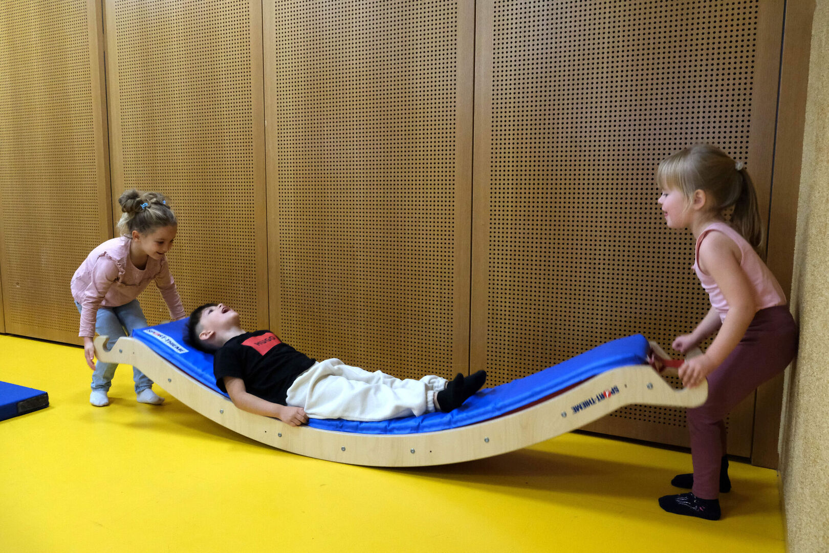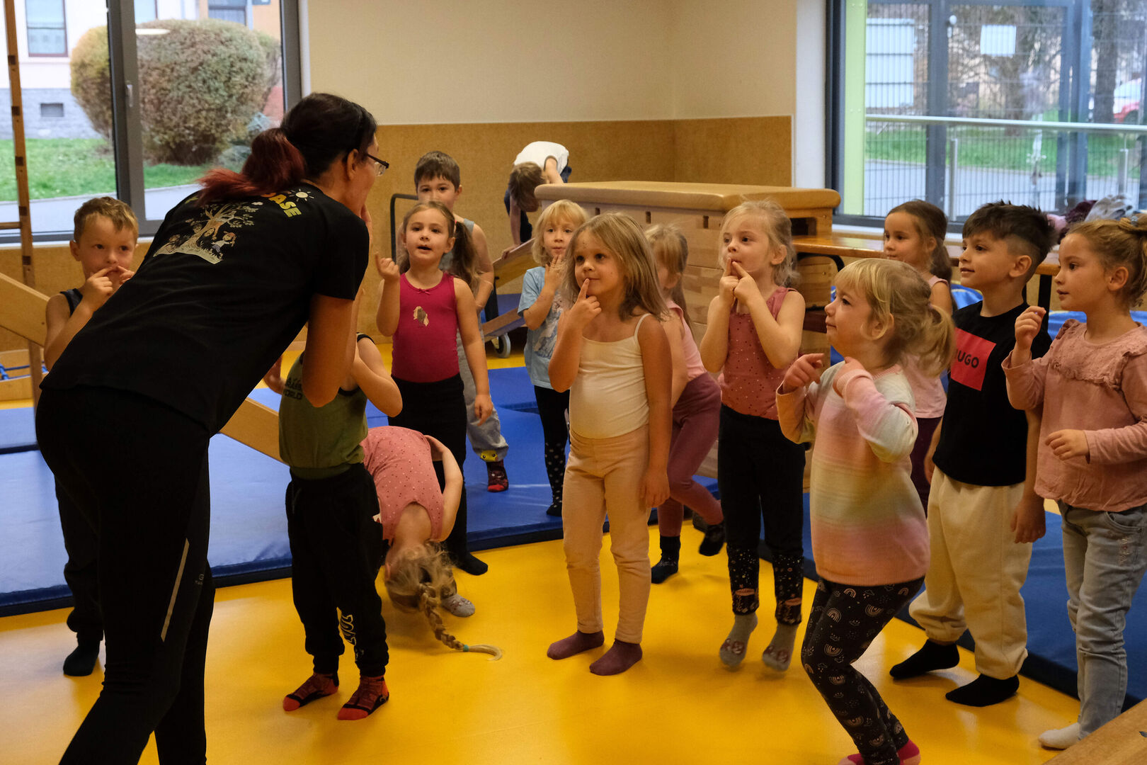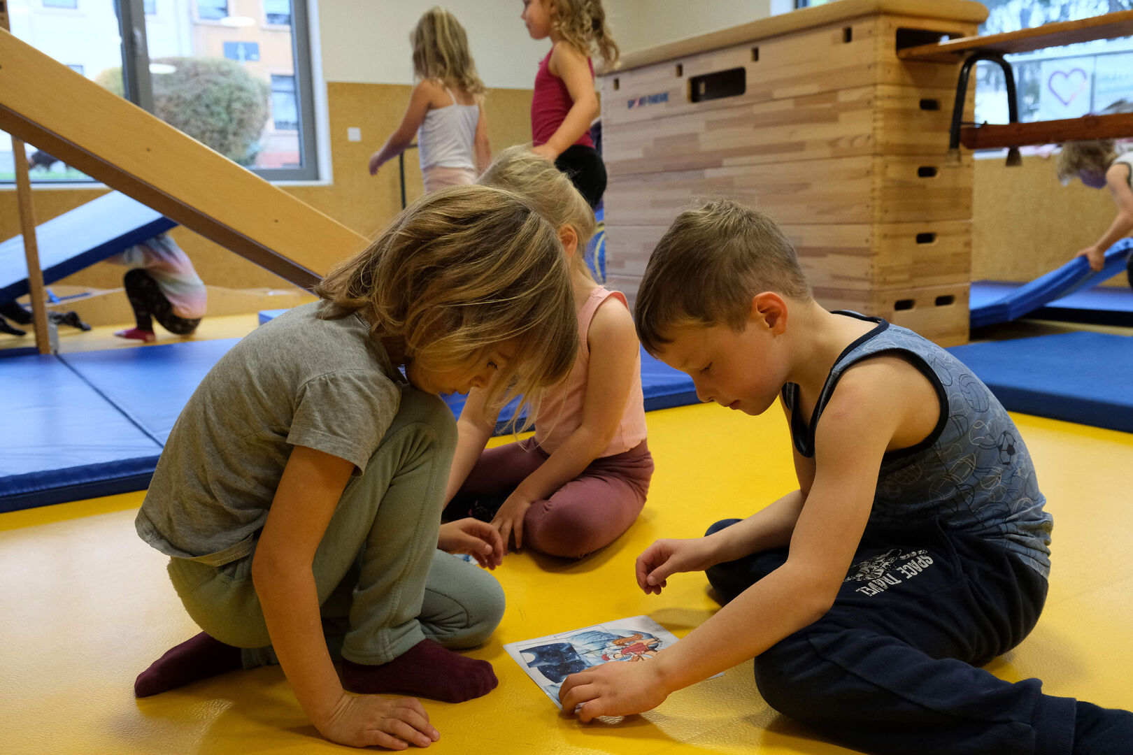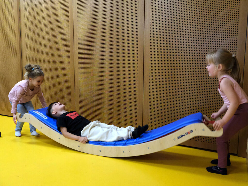 Die Gruppe von Vier- bis Sechsjährigen, die den Sportraum am Donnerstag erobert hat, war erfahren genug, um die Kästen und Wippen, Rutschen und Kletterwände ohne Scheu in Angriff zu nehmen.