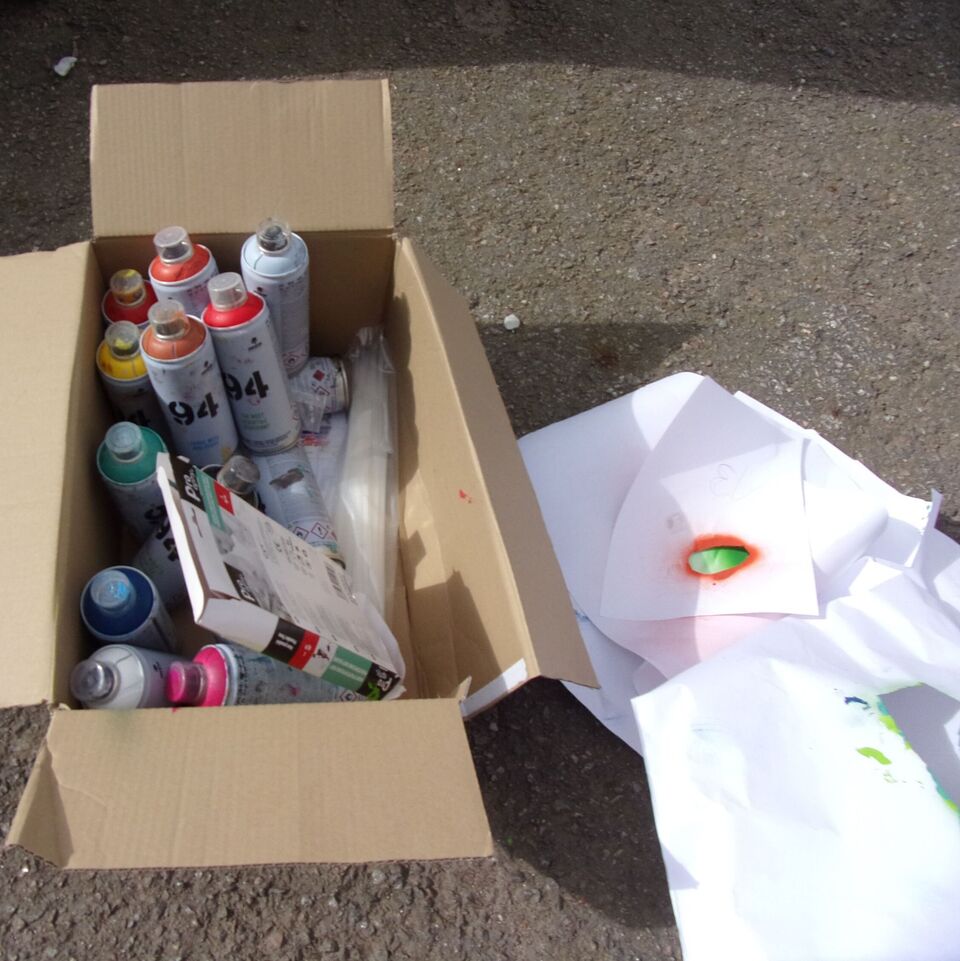 Im Freien, bei bestem Wetter und gut gesichert mit Mundschutz und Brille, wurden die Wände kreativ zu den Kinderrechten besprüht.