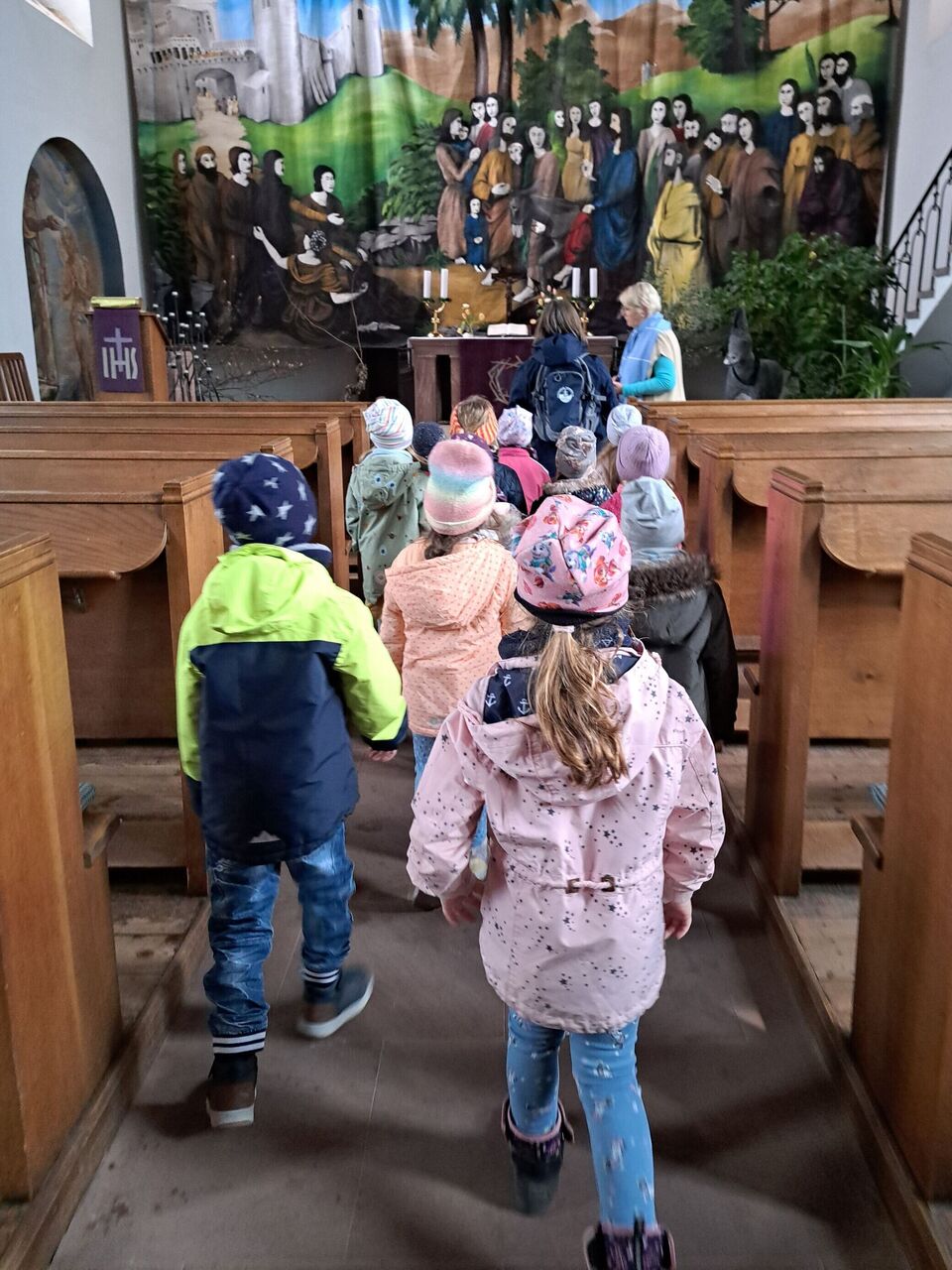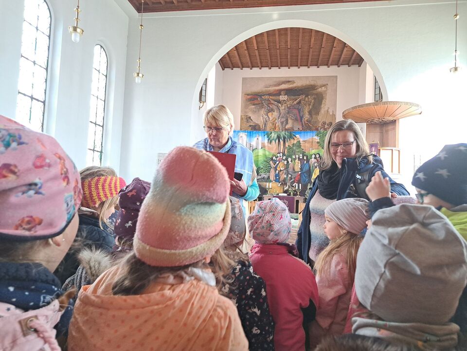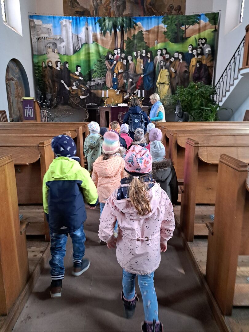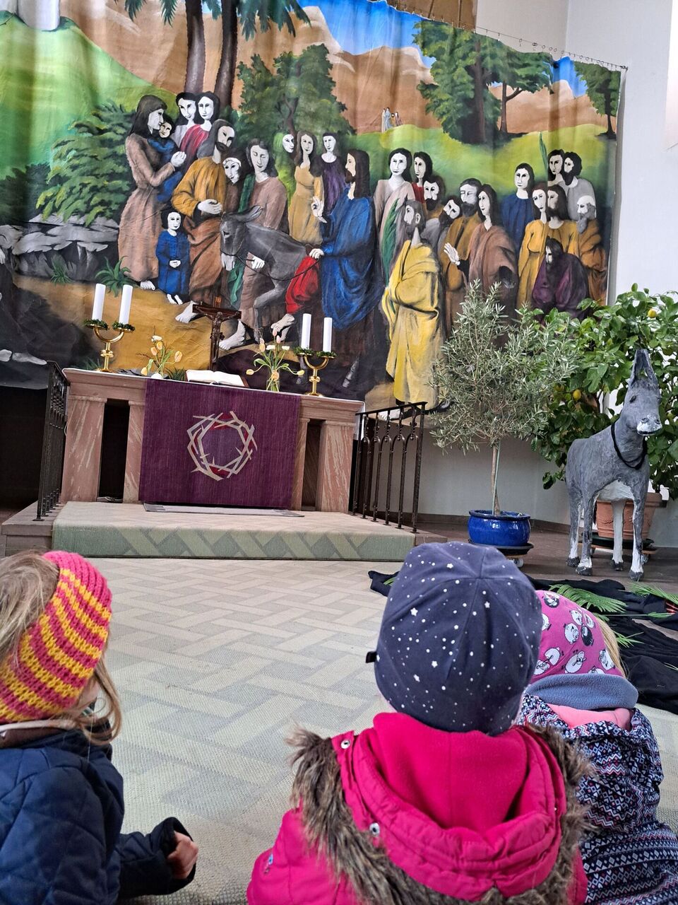 Das durften die Kinder der Kirchenmäuse heute selbst erfahren. Wir gingen in der Lutherkirche den Weg von Jesus und wurden selbst Teil der Geschichte. Zunächst durften wir im Altarraum auf einer großen Leinwand sehen, wie viele Menschen damals auf Jesus warteten und wie sie ihm mit Kleidern und Palmenwedeln den Weg ebneten. Dies geschah in der Bibelgeschichte nur ein paar Tage, bevor er von einem seiner Jünger verraten wurde und gekreuzigt wurde.