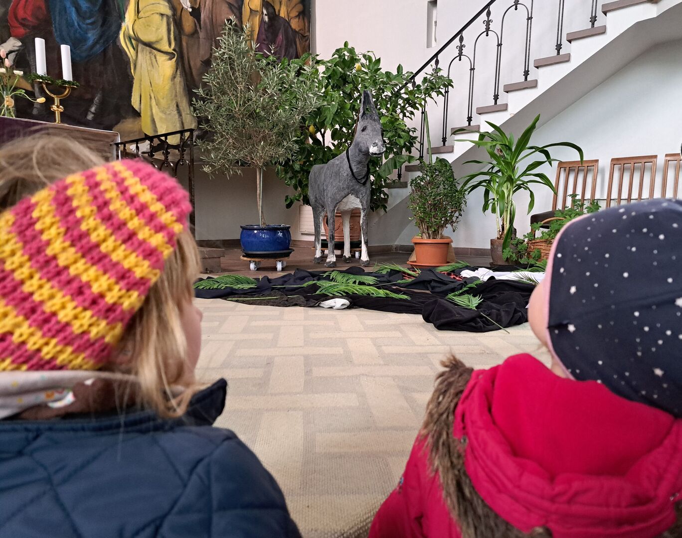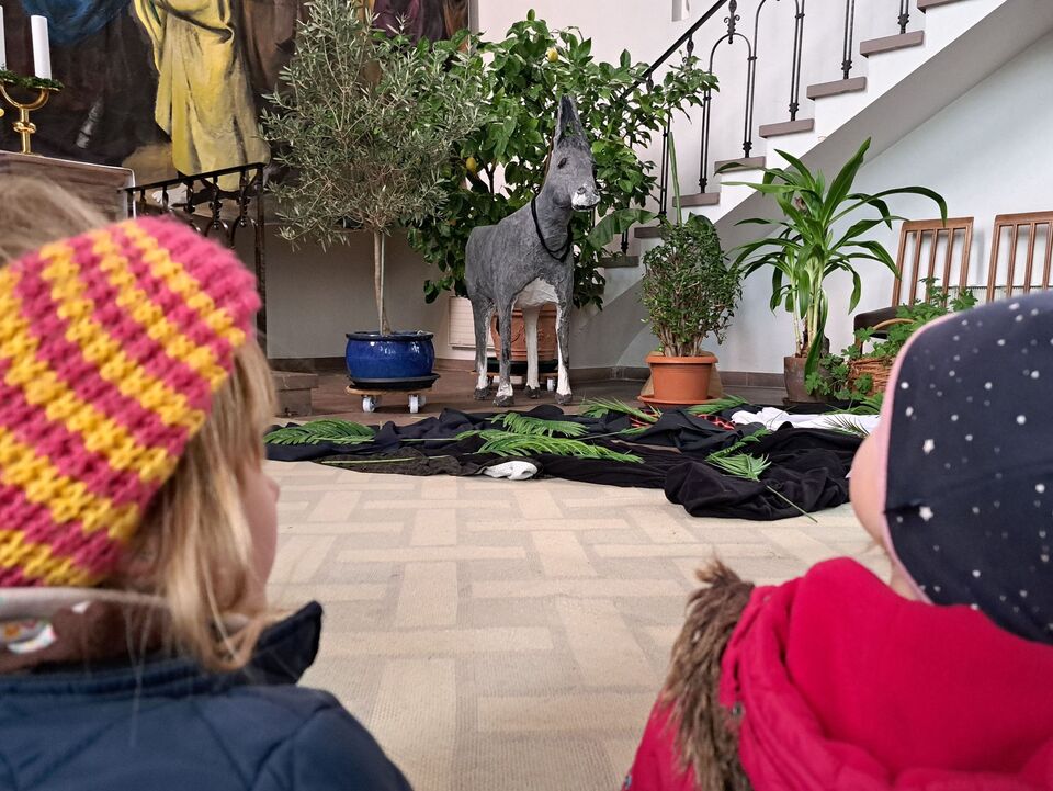 Der heutige Ausflug der Kirchenmäuse führte uns in den Ostergarten in der Lutherkirche. Dort tauchten wir in eine Zeit lang vor uns ein. Auf den Spuren der Bibelgeschichten von Jesus, steht zu Ostern eines der größten und bedeutsamsten Feste des Kirchenjahres bevor. Die Kreuzigung und Auferstehung von Jesus von Nazareth. Vor fast 2000 Jahren kam Jesus auf einem Esel in die Stadt Jerusalem geritten, wo er von den Bewohnern mit großer Freude empfangen wurde. Wie das wohl ausgesehen haben mag?