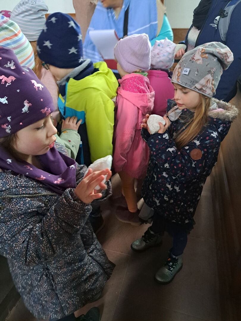 Wir lauschten weiter der Erzählung, teilten Brot, tranken Traubensaft und fühlten uns selbst als ein Teil der Geschichte. Später erfuhren wir, wie Jesus von einem seiner Jünger verraten wurde und wie er das große, schwere Kreuz auf seinem Rücken durch die Straßen Jerusalems tragen musste bis hin zum Ort Golgatha, wo Jesus gekreuzigt wurde. Diese Stelle der Bibelgeschichte stimmte viele Kirchenmäuse traurig und es war wohl auch der dunkelste Ort des Ostergartens.