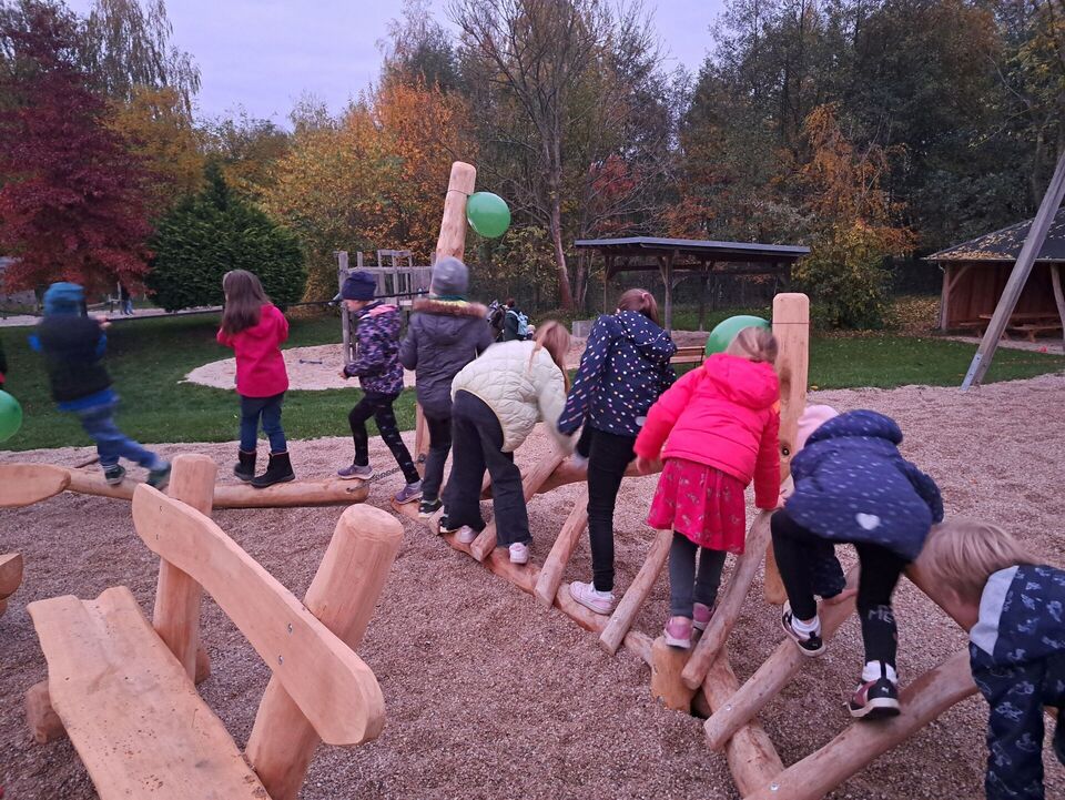 Am Mittwoch, den 30.10.2024 überschlugen sich wunderbare Ereignisse in unserer Kinderoase. Schon seit dem Vormittag verwandelte sich die Baustelle der letzten Tage in unserem Außengelände wieder in ein Spieleparadies, welches jedoch vorübergehend nur hinter einer sicheren Absperrung bewundert werden konnte.