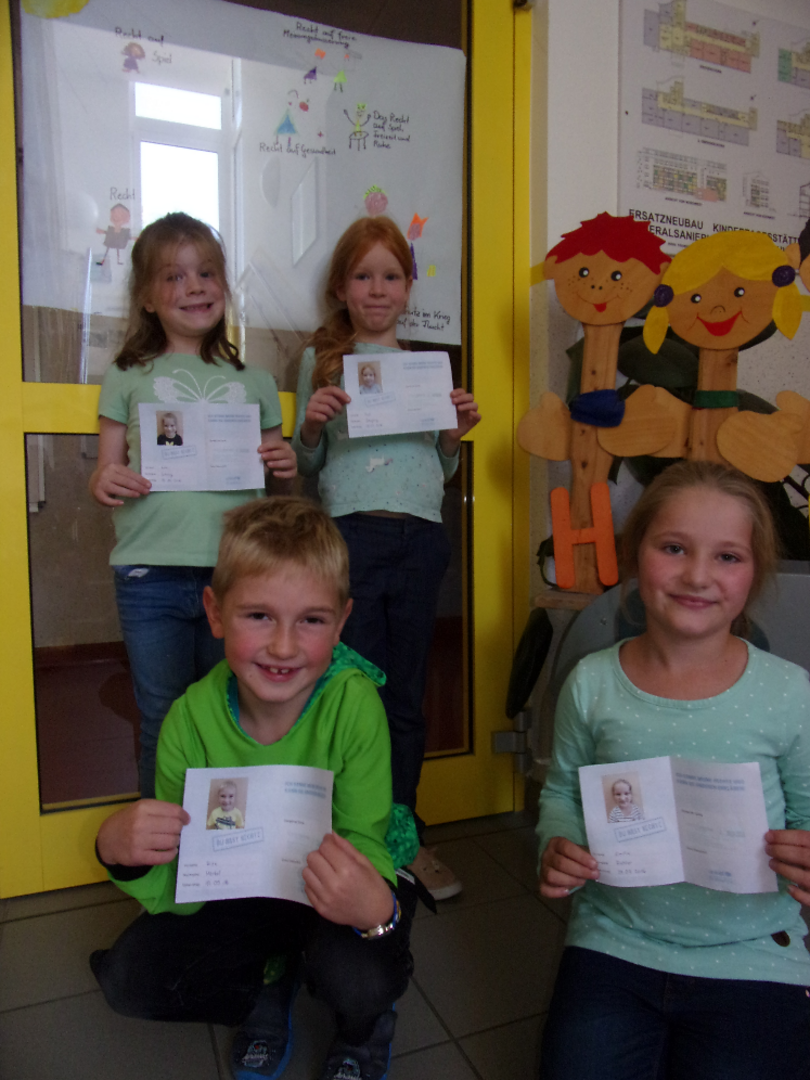 Die vielen Aktionen zu diesem Thema brachten allen die Kinderrechte näher, so dass die Kinder zum Abschluss Plakate gestalten konnten, die nun im Haus aushängen und den Hort schmücken. Das Highlight war jedoch der „Kinderrechte-Pass“. Diesen erhielt jedes Kind der beiden Gruppen als Urkunde für sehr viel Wissen und Know-How zu den Kinderrechten.