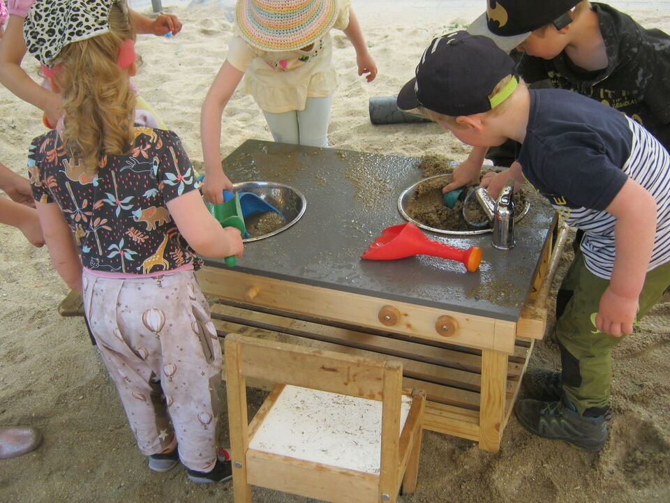 Ein Großtransport ging bereits letzte Woche in unsere Christliche Kindertagesstätte „Unterm Regenbogen“ nach Sebnitz. Sehnlichst hatten sich die Kinder eine Matschküche für das Spielen im Sand gewünscht. Kaum stand die Küche im Außenbereich, war sie auch schon den ganzen Tag von Kindern belagert und wurde damit zünftig eingeweiht. Es wurde geschaufelt, gemischt, gerührt. Das Ergebnis waren viele „leckere“ Sandgerichte unserer kleinen Kochkünstlerinnen und -künstler.