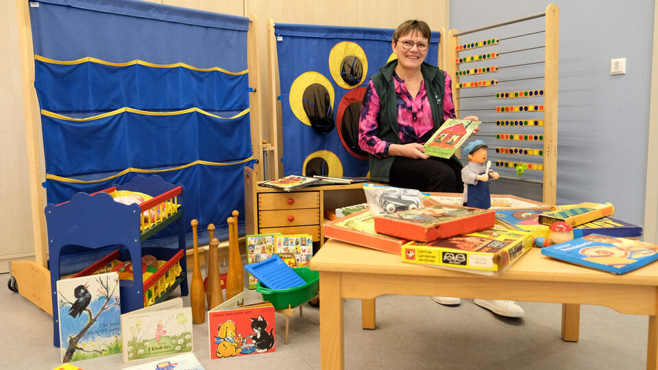 Ab sofort können Familien die Spiele der Spielothek von Donnerstag bis Sonntag ausleihen, von Montag bis Mittwoch nutzen die Kita-Gruppen die Spiele selbst. Zur Auswahl stehen u.a. Puzzle, ein großer Bagger, Babypuppen und Spiele.