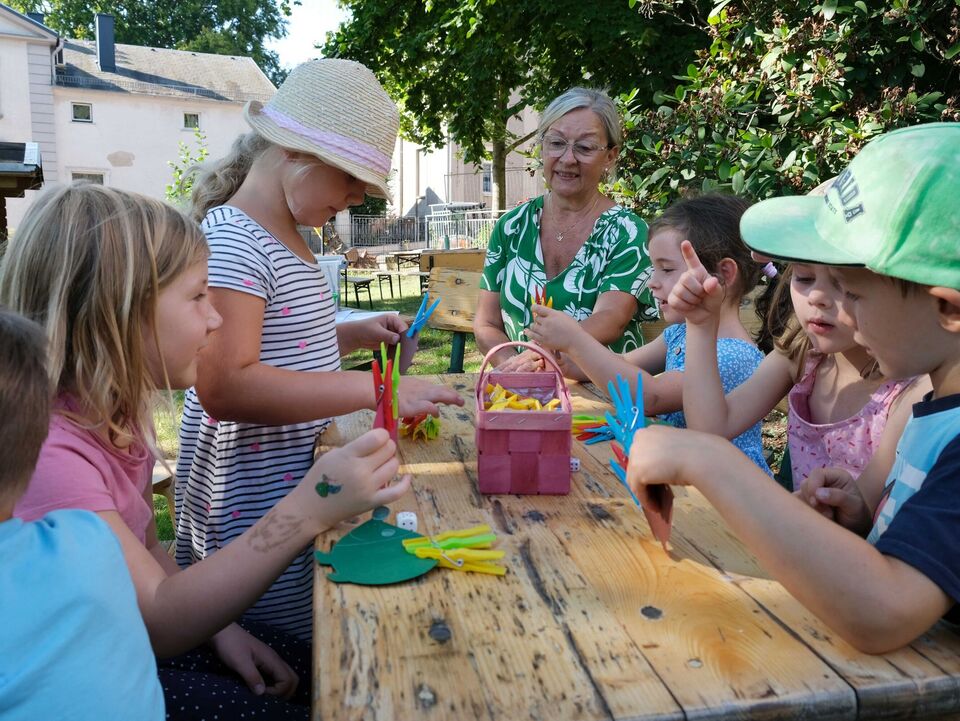 Seit zwei Wochen ist Gabriele Bluhm, die zum 1. Juli offiziell in den Ruhestand verabschiedet wurde, deshalb jetzt auf Spendenbasis stundenweise bei den „Sterntalern“, um genau dort anzuknüpfen, wo das Sprach-Kita-Projekt aufgehört hatte. Sie kann sich Zeit nehmen und sich einzelnen Kindern ganz intensiv zuwenden, ihnen vorlesen, mit ihnen ins Gespräch kommen, sie individuell beobachten und fördern, Lieder singen, Reim- und Fingerspiele anbieten…