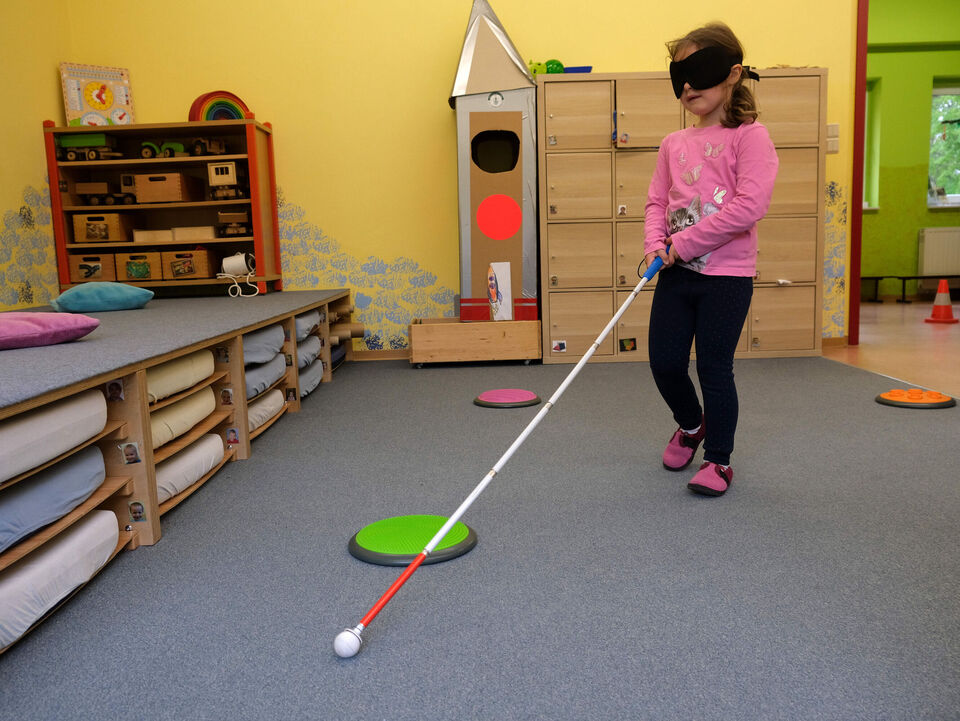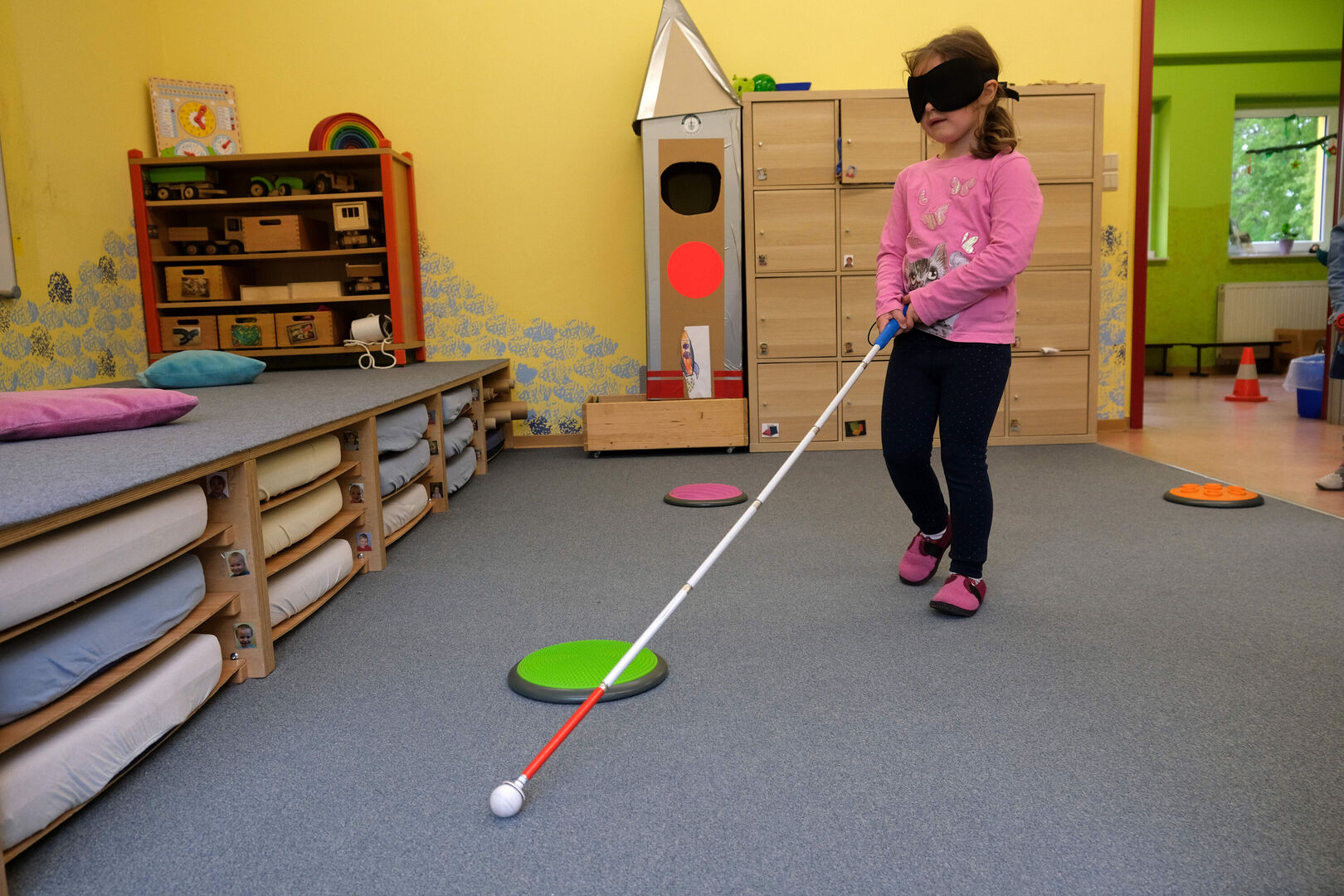 Wie fühlt es sich an, wenn man nicht auf seinen eigenen Füßen geht, sondern im Rollstuhl durch die Gegend fährt? Wie viel Kraft braucht man in den Armen, um sich fortzubewegen? Wie breit muss der Weg sein? Wie kommt man um die Kurve? Und wie können Blinde sich im Raum zurechtfinden, wenn sie doch überhaupt nichts sehen?