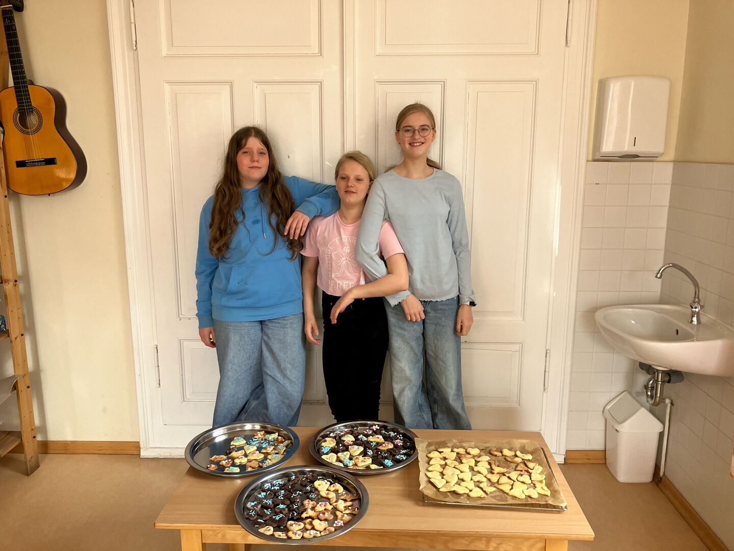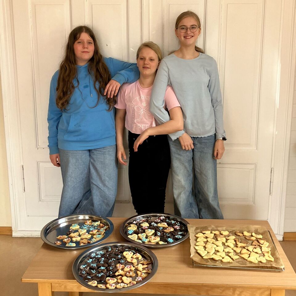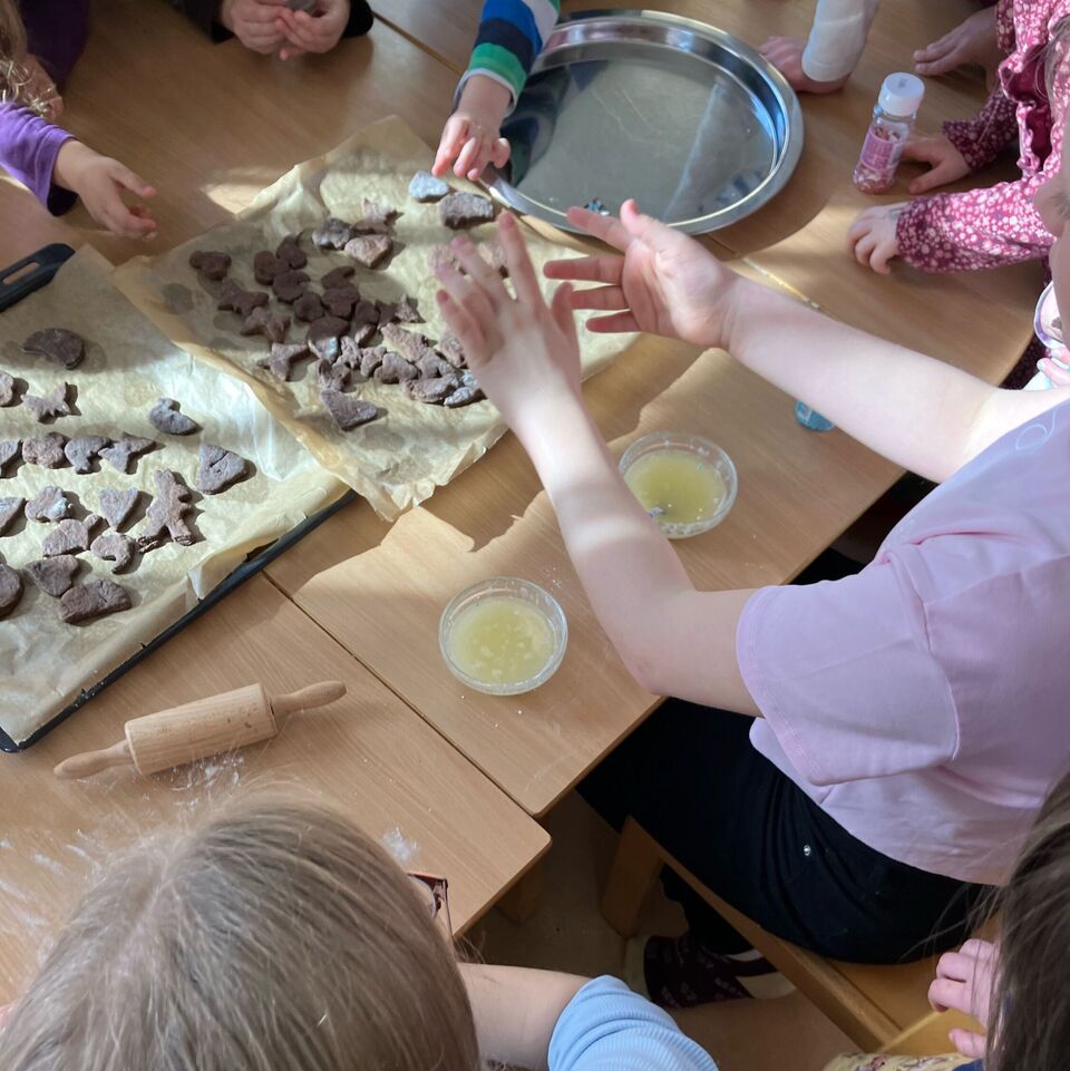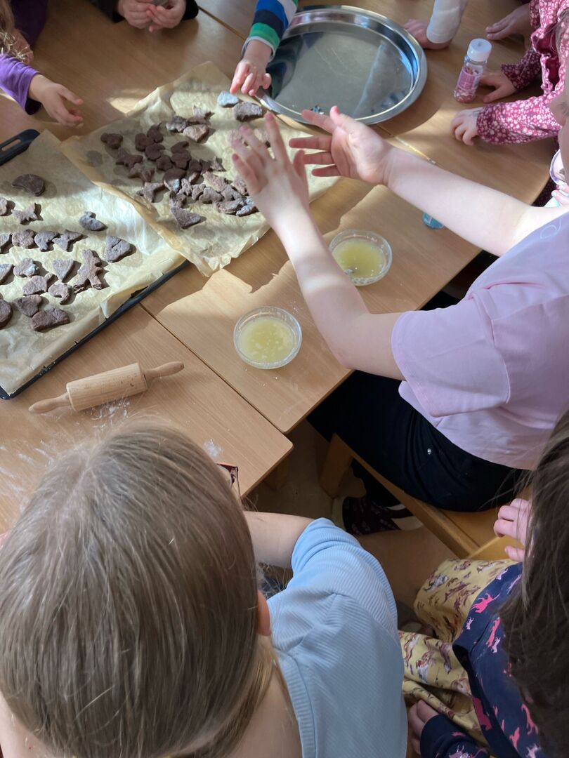Genau dies setzten die drei am nächsten Tag mit den Kindern um. Viele fleißige Hände halfen beim Kneten, Mischen und Dekorieren, so dass am Ende mehr als genug Gebäck für alle da war. Nochmals vielen Dank für das tolle Angebot!
