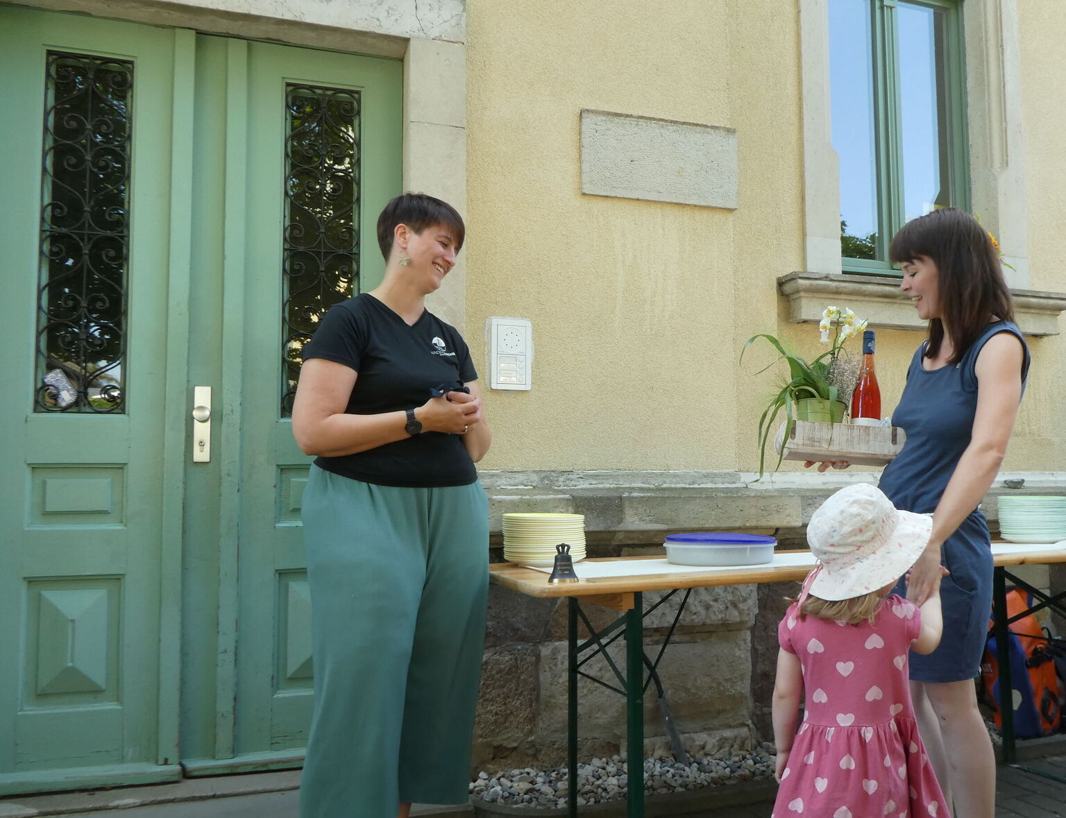 "Geht es jetzt los?" Mit Spannung warten die Kinder im christlichen Kinderhaus Guter Hirte am 31. Juli auf die Vesperzeit. Die Erwachsenen haben bereits den Garten mit Girlanden geschmückt, Geschirr hinaus balanciert und irgendetwas in den Hintergarten getragen. Denn heute ist ein besonderer Tag, das wissen auch die "Kleinen". Sie haben ja schon im Morgenkreis erfahren, dass Franziska Decker heute den letzten Tag als Pädagogin und Chefin im Kinderhaus ist. Viele von ihnen haben mit ihren Eltern oder allein ein Blatt mit guten Wünschen gestaltet, welches jetzt gebunden als Buch auf Franziska wartet. Beim Elterncafe soll es heute überreicht werden.
