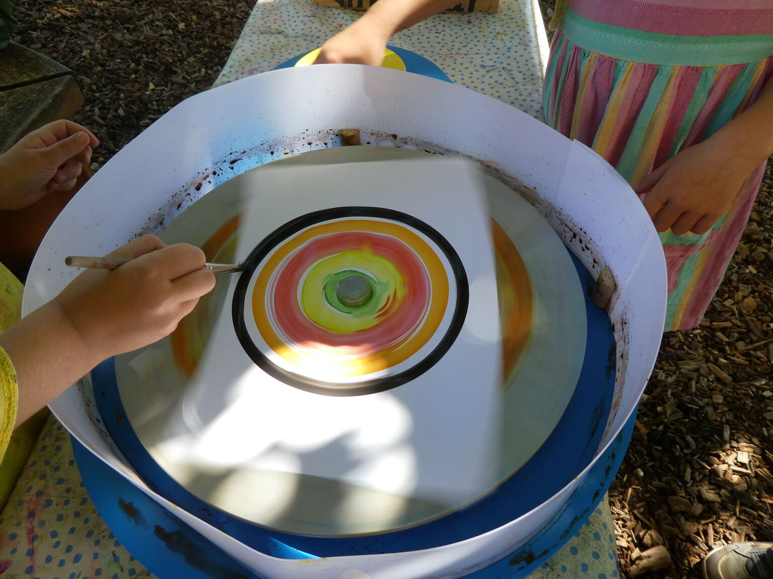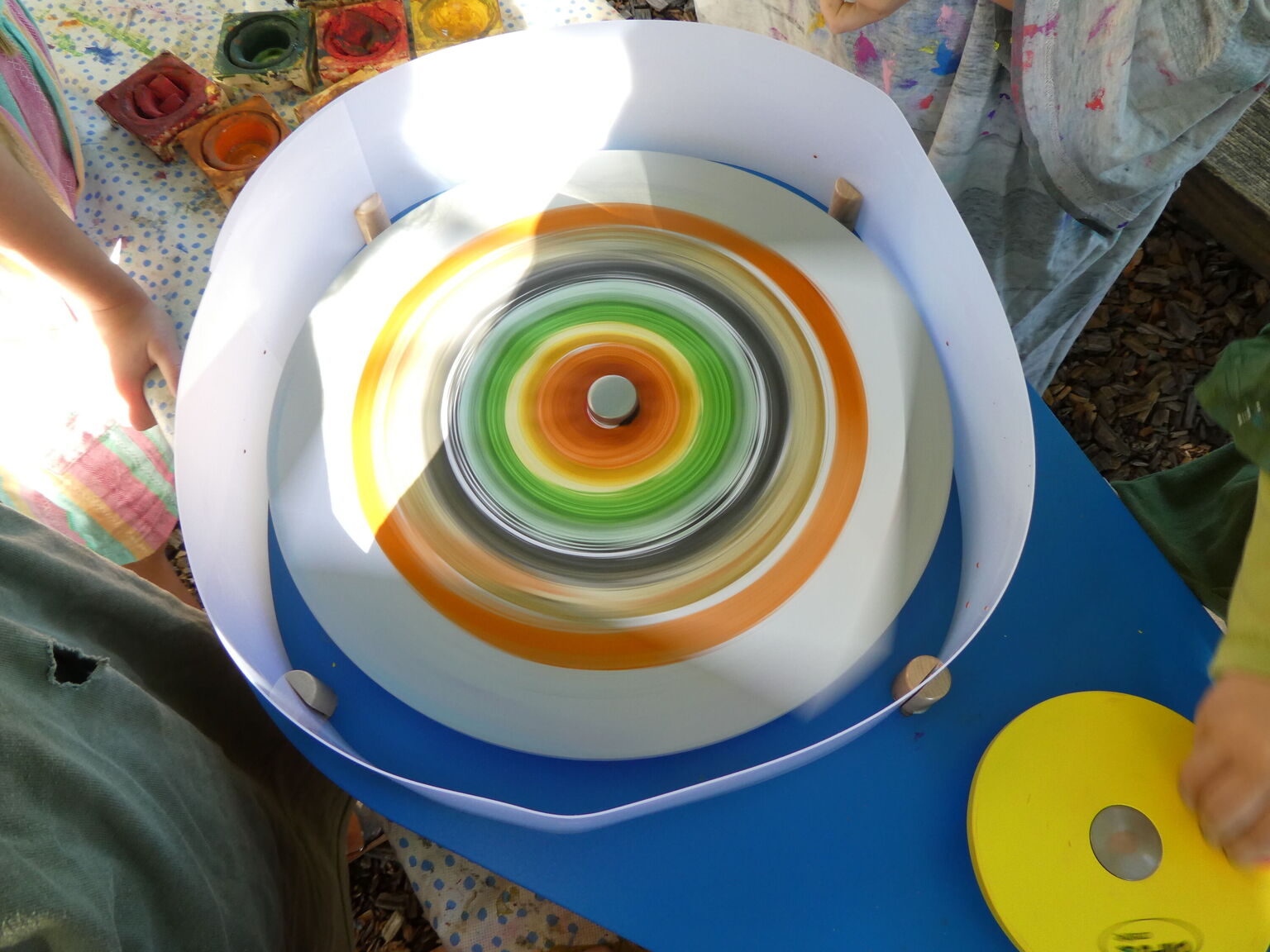 Es gab natürlich auch Geschenke für die Kinder im Kinderhaus. Franziska hatte schon im Laufe der letzten Wochen jedem Kind eine persöhnliche Abschiedkarte geschrieben und überreicht. Nun bekamen wir noch einen neuen Farbkreisel, den wir gleich zum Elterncafe ausprobieren und kleine Autos für den Sandkasten, welche sofort getestet werden.