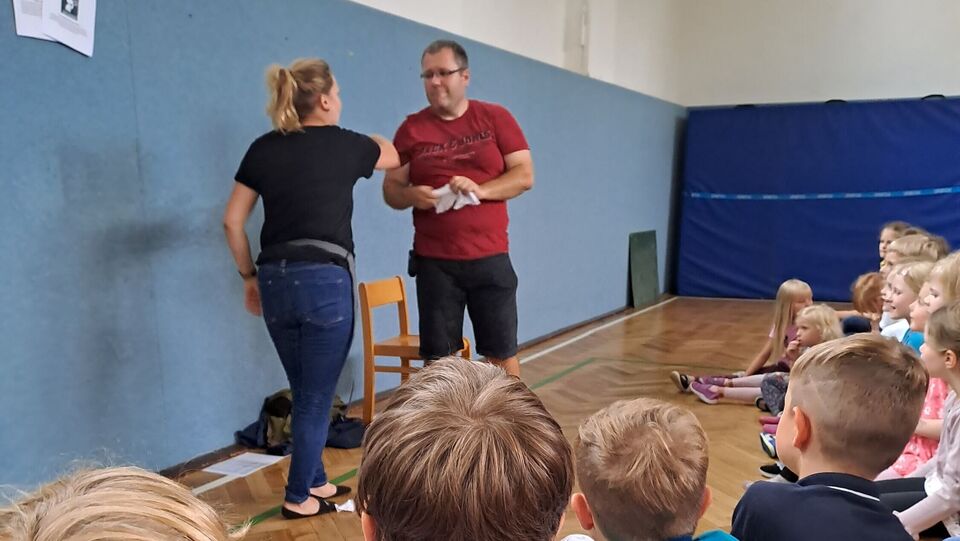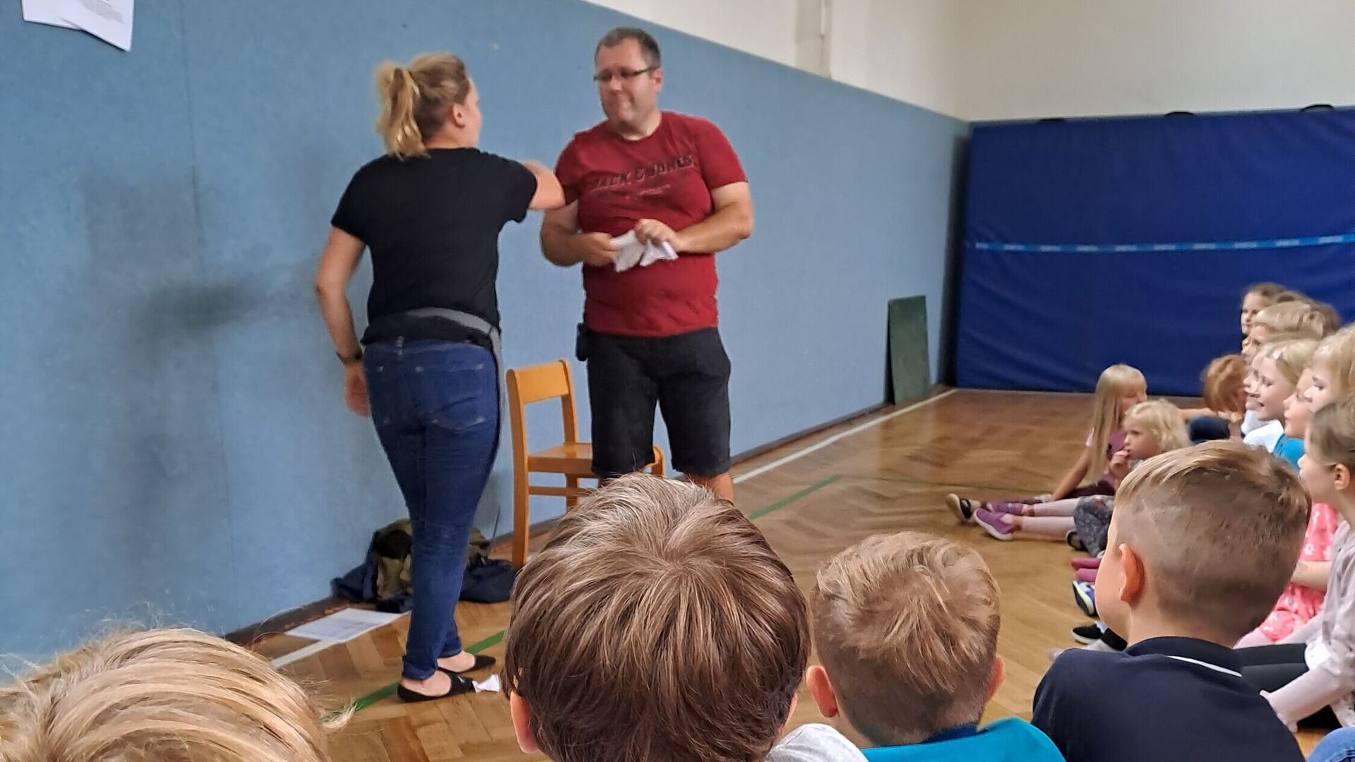 Also machten wir uns in der Auftaktwoche zu unserem Projektmonat „Kinderrechte“ auf den Weg, mit den Kindern in Erfahrung zu bringen, was denn diese Kinderrechte überhaupt sind und was sie bedeuten. Pantomimisch boten Frau Walter und Herr Rudolph am Montag allen Kindern ausgewählte Kinderrechte dar. Die Kinder knackten die Rätsel. Auch wenn schnell klar wurde, dass Kinder ganz andere Worte gebrauchen, als wie die Erwachsenen es formuliert haben.