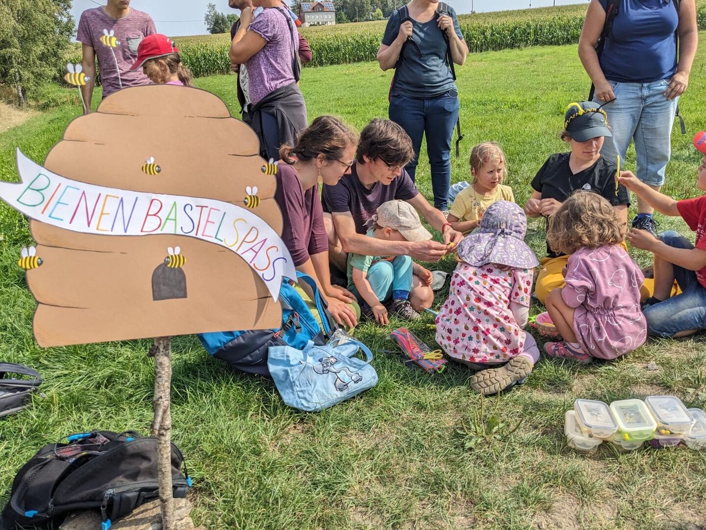 Dort durften wir auch nochmal Familie Uhlig begrüßen, bei denen die Familien Honig erwerben konnten. Zusätzlich gab es als kleine „Give Aways“ noch extra von Herrn Uhlig angefertigten und abgefüllten „Sonnenkäfer“-Honig, den sich die Familien nun beim nächsten Frühstück schmecken lassen können.