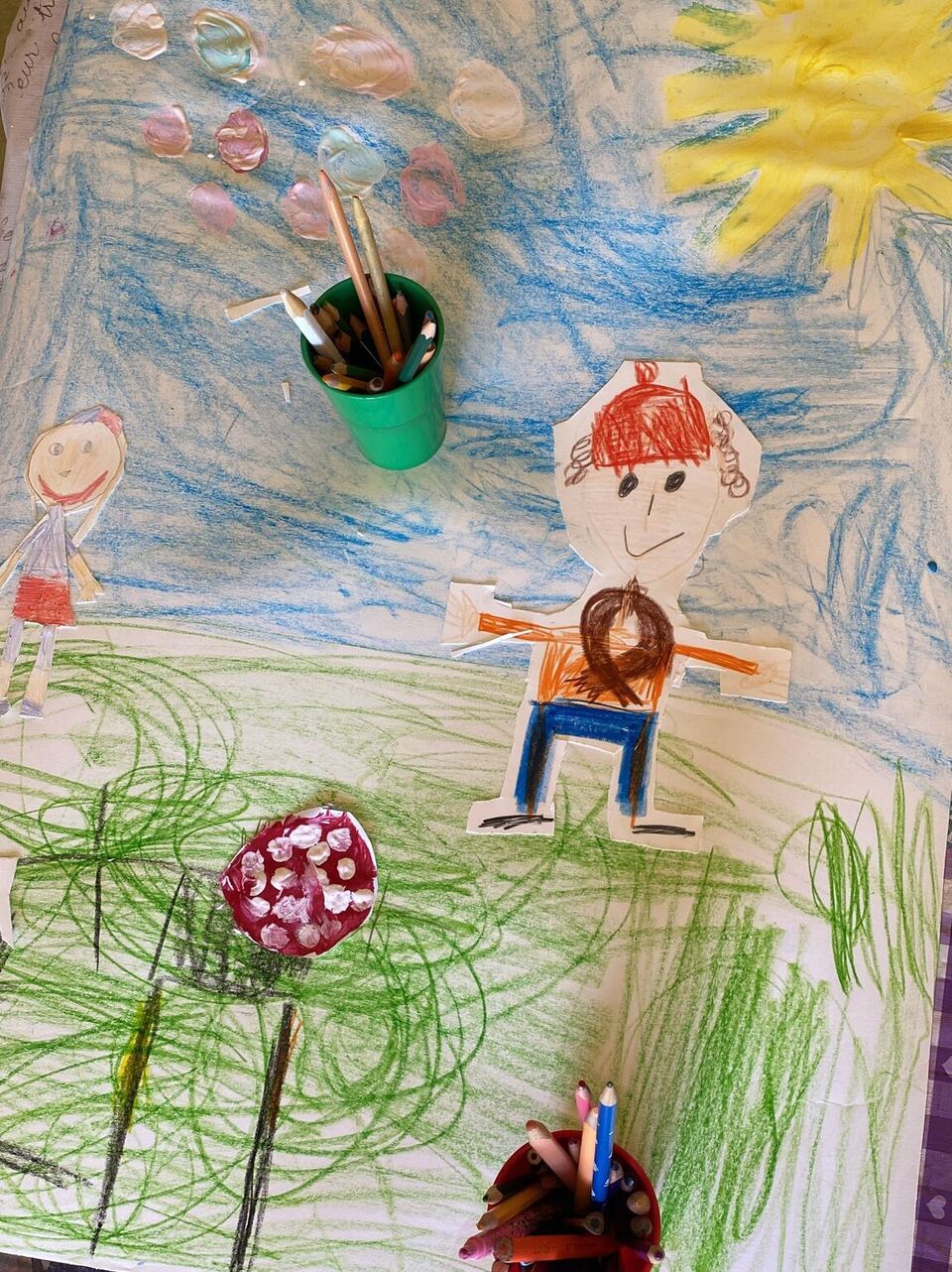 Einfach auf der Wiese liegen, in den Himmel schauen, träumen und entspannen – so stellen sich die Kinder in unserer Kita „Sonnenkäfer“ das Recht auf Freizeit vor. Für den geplanten Marsch durch Niederbobritzsch am Weltkindertag waren sie in den vergangenen Tagen eifrig dabei, große Plakate zu gestalten, die jeweils ein Kinderrecht bebildern. Auf dem Plakat zum Recht auf Selbstbestimmung sieht man in der Ecke die liebe Sonne scheinen. Ein Mädchen trägt deshalb kurze Hosen und T-Shirt, ein Junge dagegen lange Hosen, Schal und Bommelmütze. Denn auch das ist ein Kinderrecht: selbst zu entscheiden, was man anziehen will.