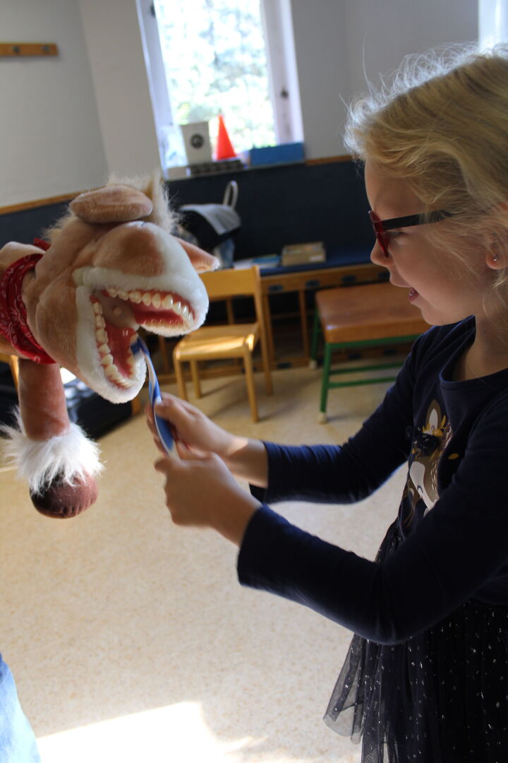 Die Gruppenprophylaxe durch den zahnärztlichen Dienst am folgenden Tag rundete die Auseinandersetzung mit dem Thema „Zahngesundheit“ ab.