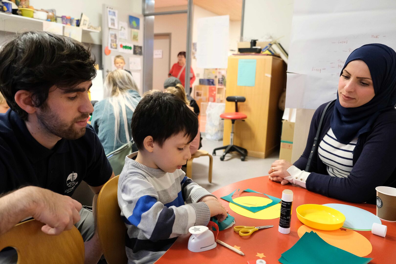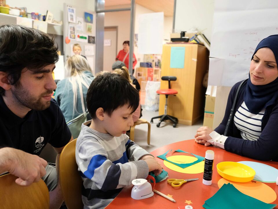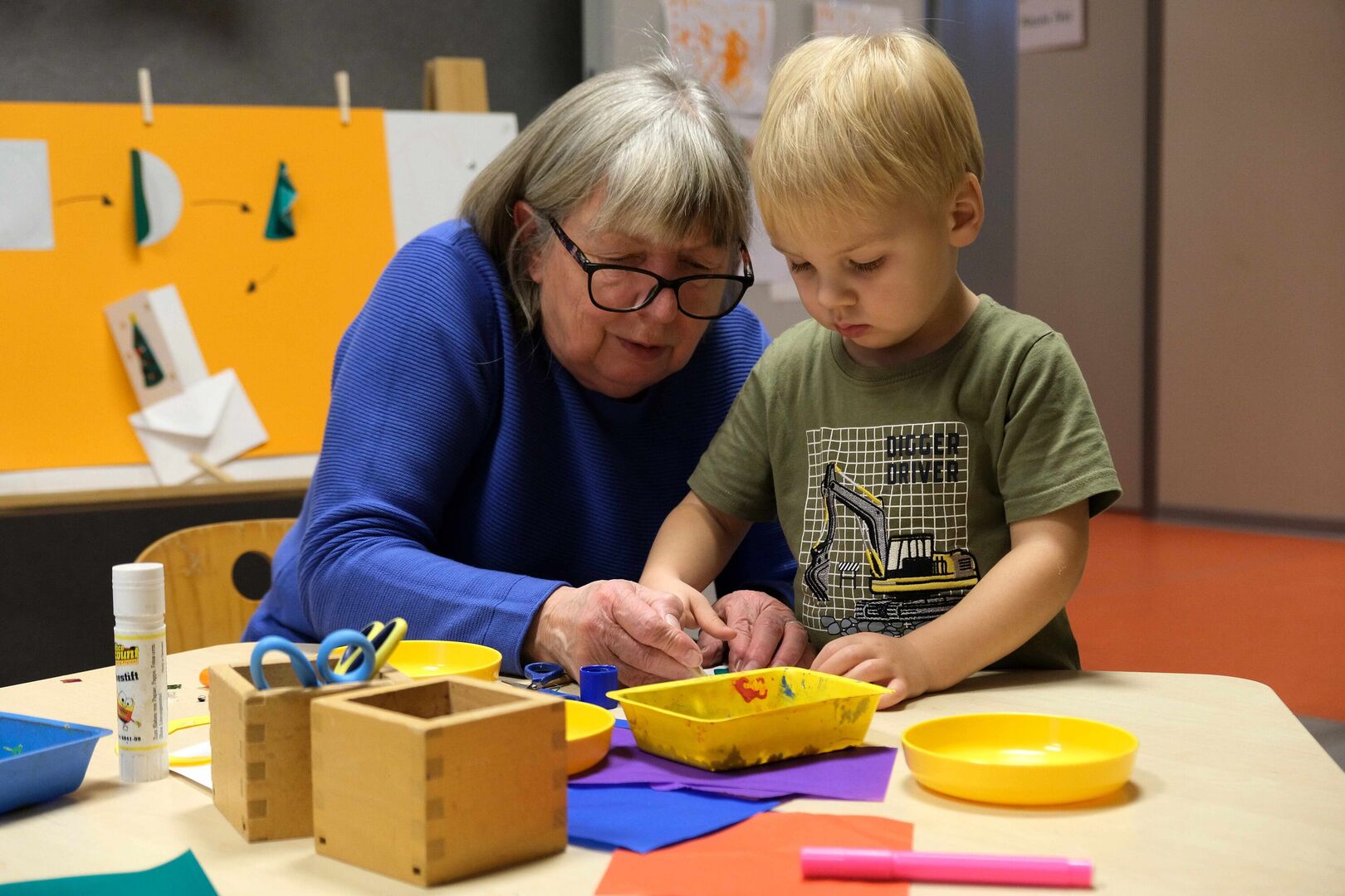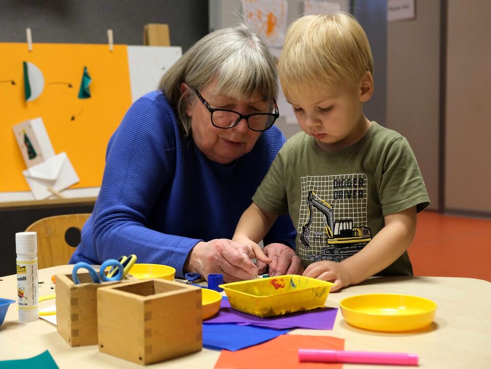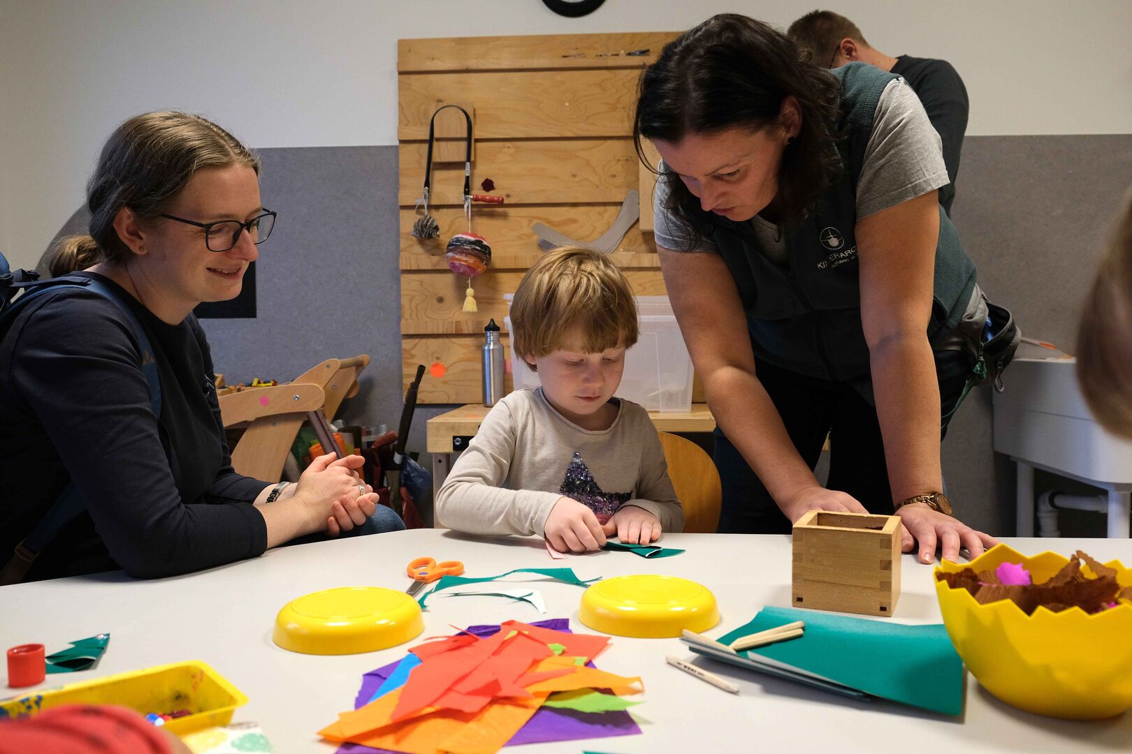 Dann wurden das Kuchenbuffet mit einer beachtlichen Geburtstagstorte und das kunterbunte Treiben im ganzen Haus eröffnet. In allen Bereichen konnten die Kinder mit ihren Eltern Kaffeetrinken, spielen und an zahlreichen Stationen weihnachtliche Basteleien anfertigen: vom Papiertannenbaum über selbst angemalte Baum-Kugeln bis hin zu Tischschmuck aus Naturmaterialien. Im Foyer wartete eine große Tombola und ein Kinderschminktisch auf die Mädchen und Jungen.