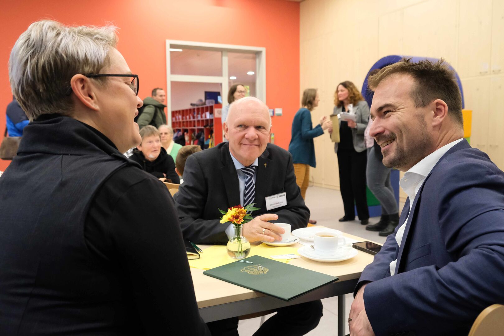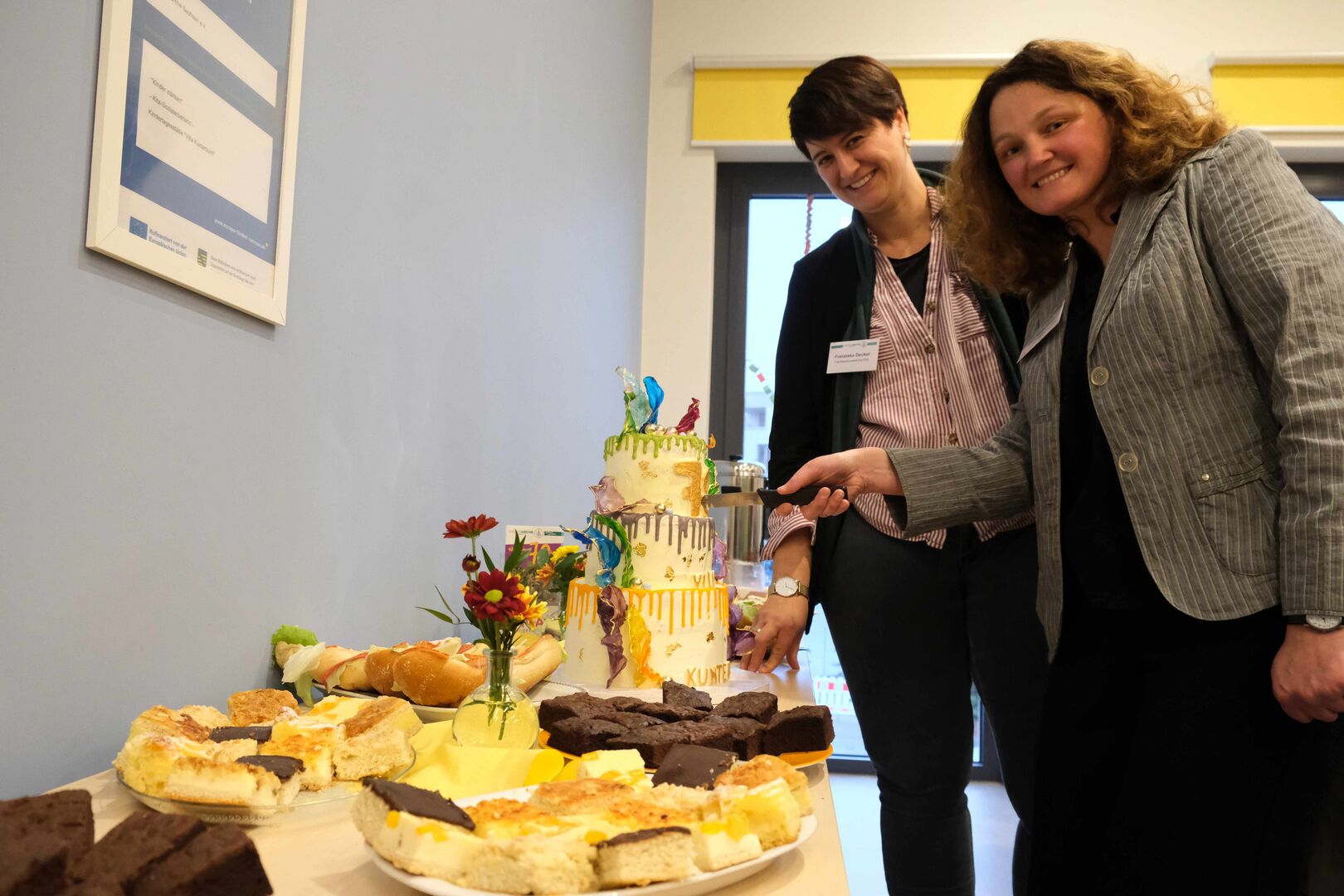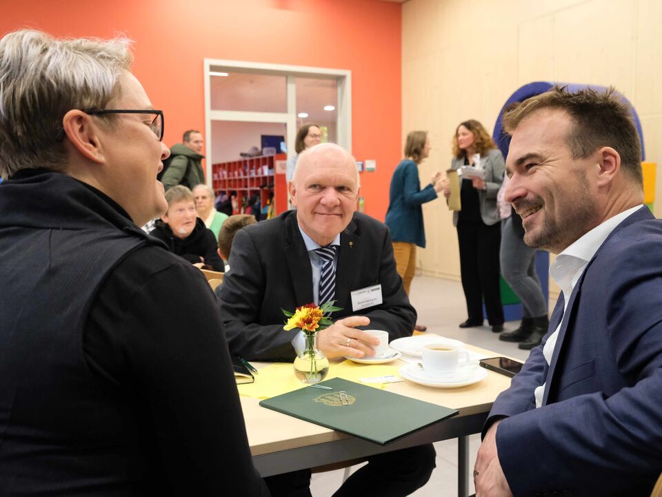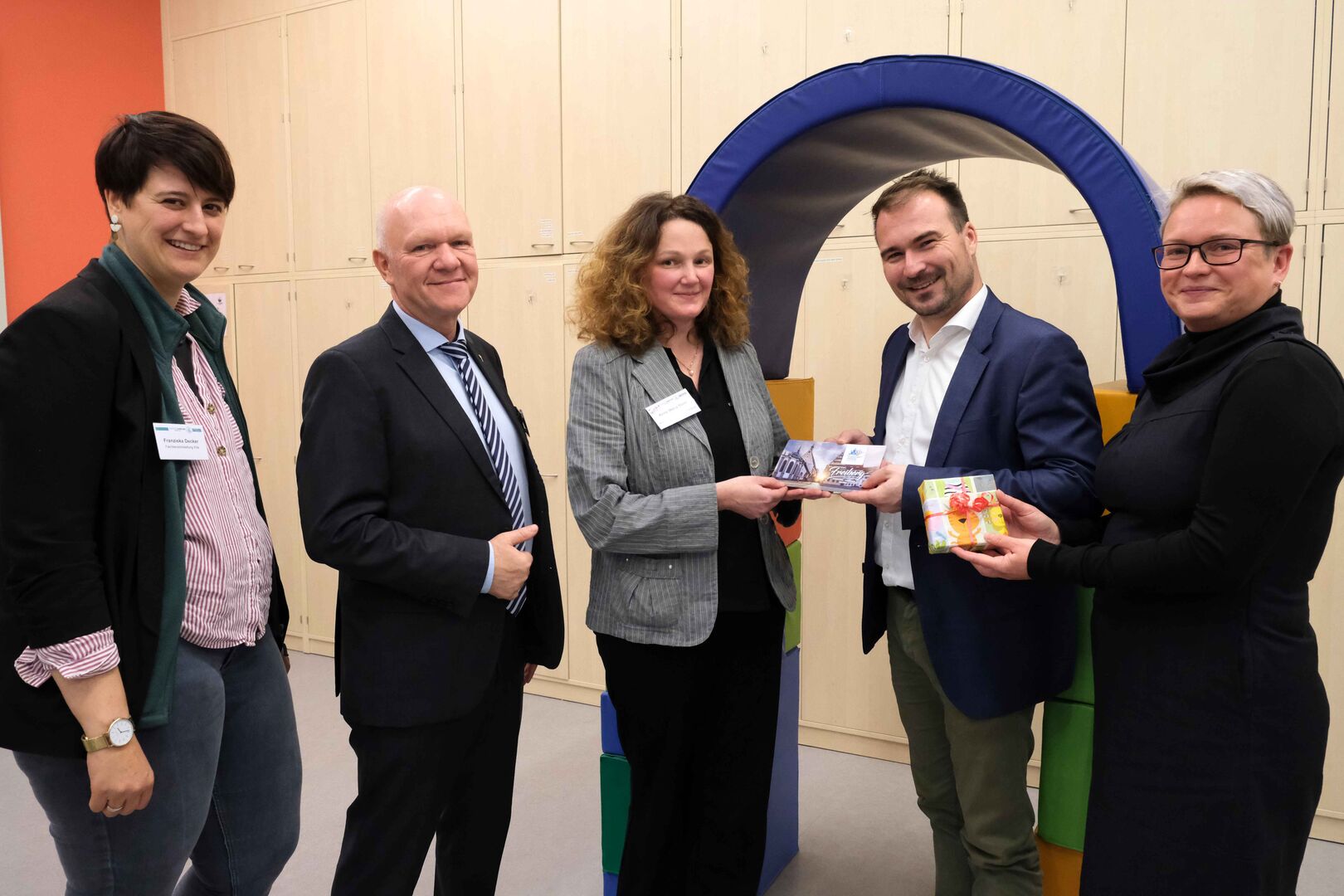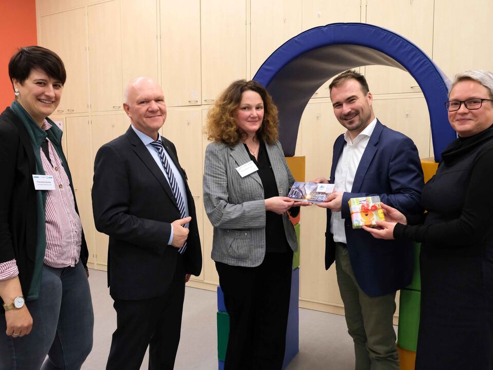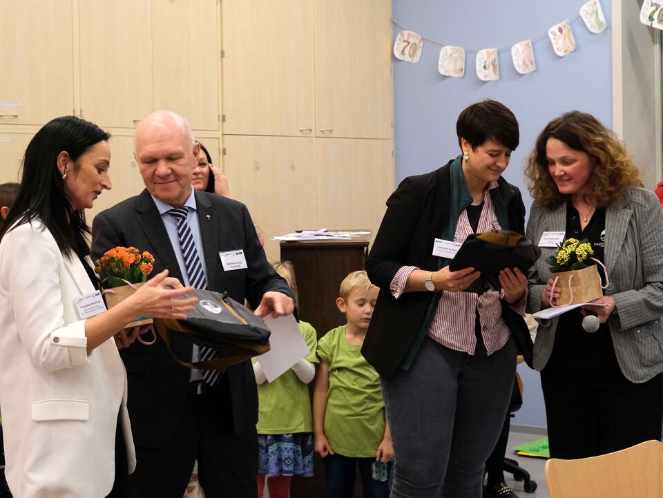 Für den erkrankten Oberbürgermeister überbrachte der Leiter des OB-Büros, Philipp Preißler, die herzlichen Glückwünsche der Stadt und dankte dem Team des Hauses für die wertvolle Arbeit, die es den Eltern ermöglicht, unbesorgt ihrem Beruf nachzugehen, während sie ihre Kinder in guten Händen wissen. Auch von der Stadt gab es anlässlich des Geburtstages ein Geschenk zum Auspacken und ein Geschenk zum Ausgeben.