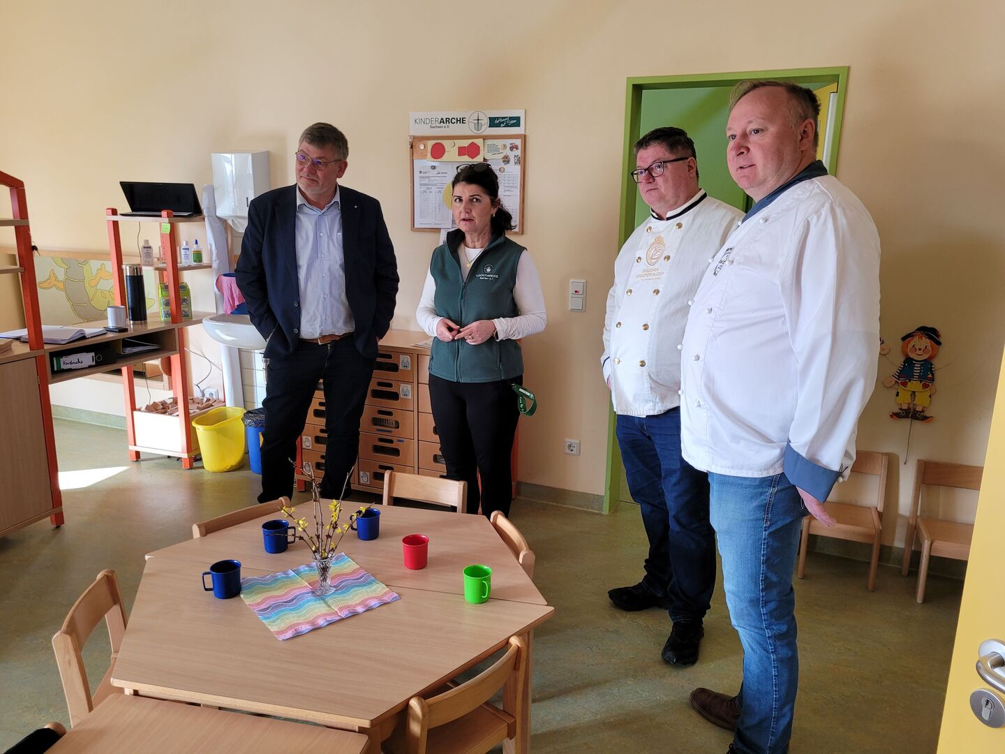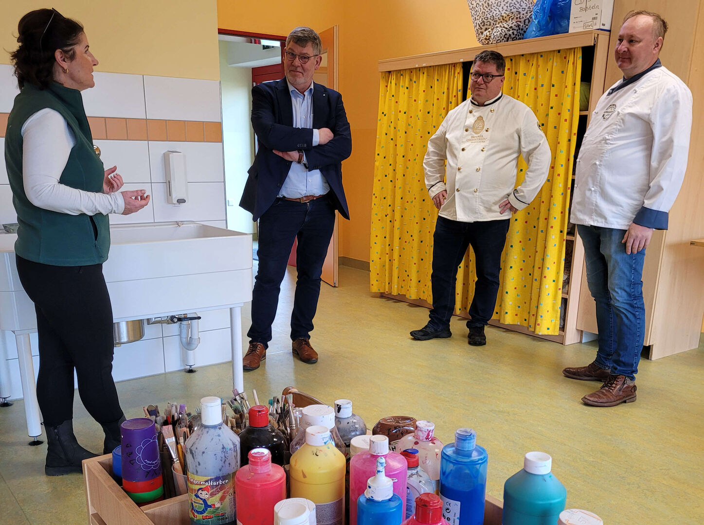 Bei einer Führung durchs Haus zeigten sich die Stollenbäcker begeistert von den Themenräumen und dem offenen Konzept und waren überrascht, wie die frühkindliche Bildung in der Kita aussieht (auch aus der Perspektive eines Ausbilders im Handwerksberuf). Den selbst gebackenen Kuchen der Kinder lobten sie in höchsten Tönen und ließen im Gegenzug ein paar Tüten Bäcker-Kekse zum Naschen da.